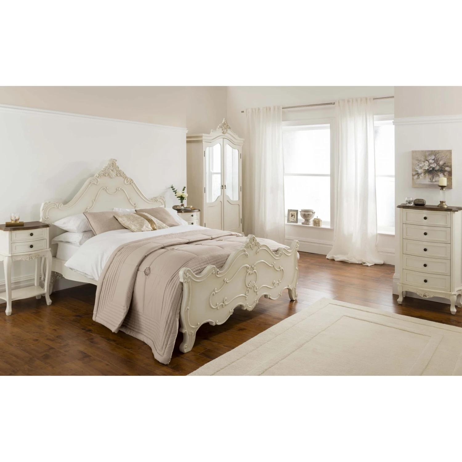 We are proud to present our stunning new collection; the Annaelle collection. Handcrafted and carefully built by experts, this collection is sure to impress. Part of our ever expanding range of antique French bedroom furniture, the antique white finish on this bedside table is sure to add much additional style and aesthetics in your wonderful home.
