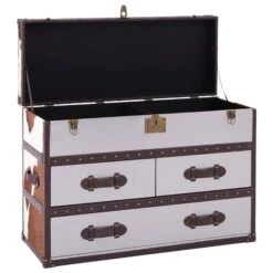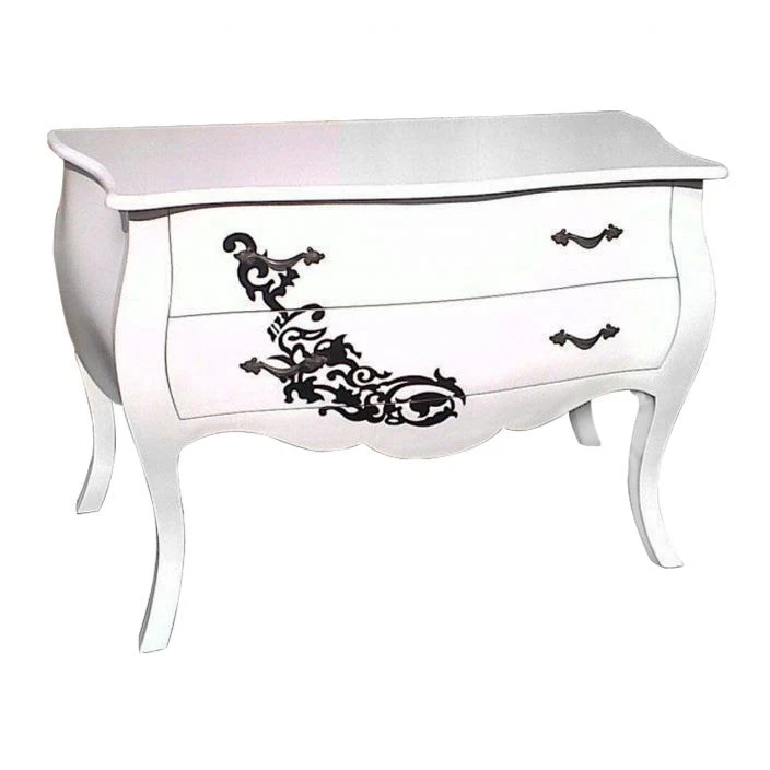 Solve your storage needs with this versatile antique French chest. Hand crafted using natural materials this chest is a sturdy product. The beautiful black pattern on the front of this chest of drawers adds much aesthetic beauty. Working well either on its own or complimenting our marvellous shabby chic furniture, this chest will be sure to amaze looking exceptional in any bedroom setting.