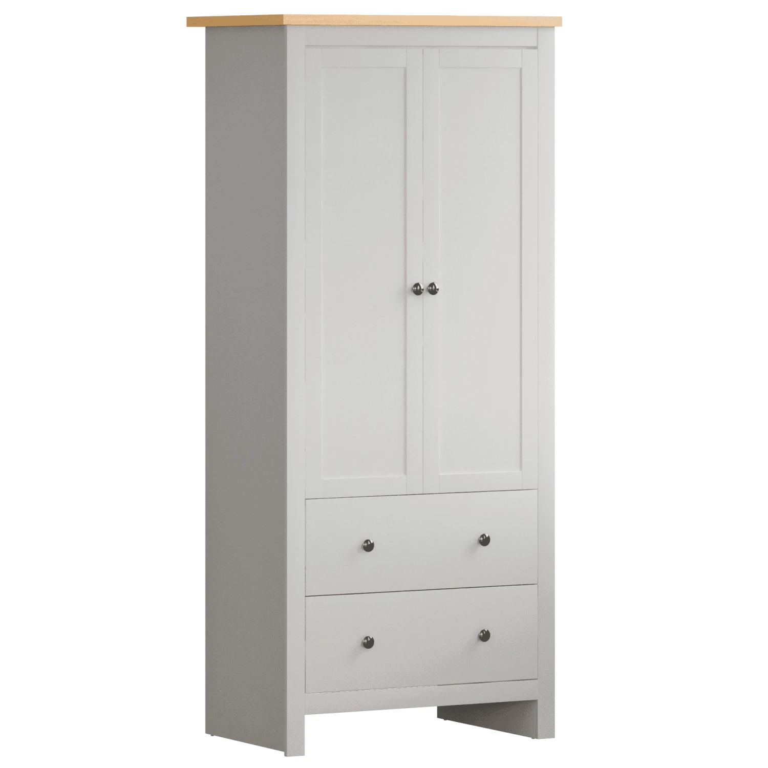 This beautiful, sleek designed wardrobe in crisp white is from the Arlington range. It’s built from top quality pine wood finished in a bright white for an elegant, soft finish. The Arlington Wardrobe has 2 drawers on the bottom for your folded clothes and 2 doors for internal storage to hang the rest of your clothes. To add to its modern, contemporary design, it’s completed with small silver round handles to enhance its sleek style. Solidly built for a long-lasting piece of furniture.