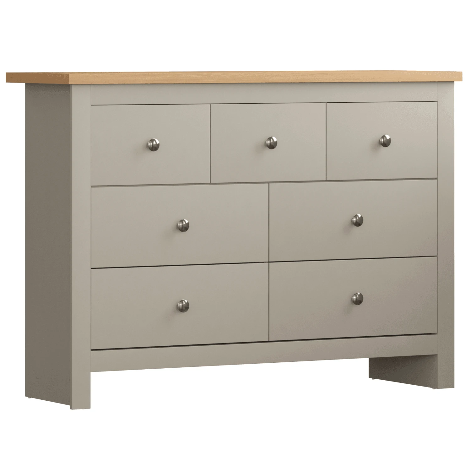 The stunning Arlington 4+3 Drawer Grey Chest comes with plenty of storage space thanks to its 4 large bottom drawers and 3 smaller drawers on top. Manufactured using a beautiful pine wood, it’s finished off in a soft grey. A sophisticated style of chest of drawers offering storage solutions and a modern look for your interior. The Arlington Grey Chest is perfect for a bedroom for folding away your clothes or for a lounge to store your household items in. Versatile and practical all in one! It’s available in white also. The Arlington 4+3 Drawer Chest is a popular choice.