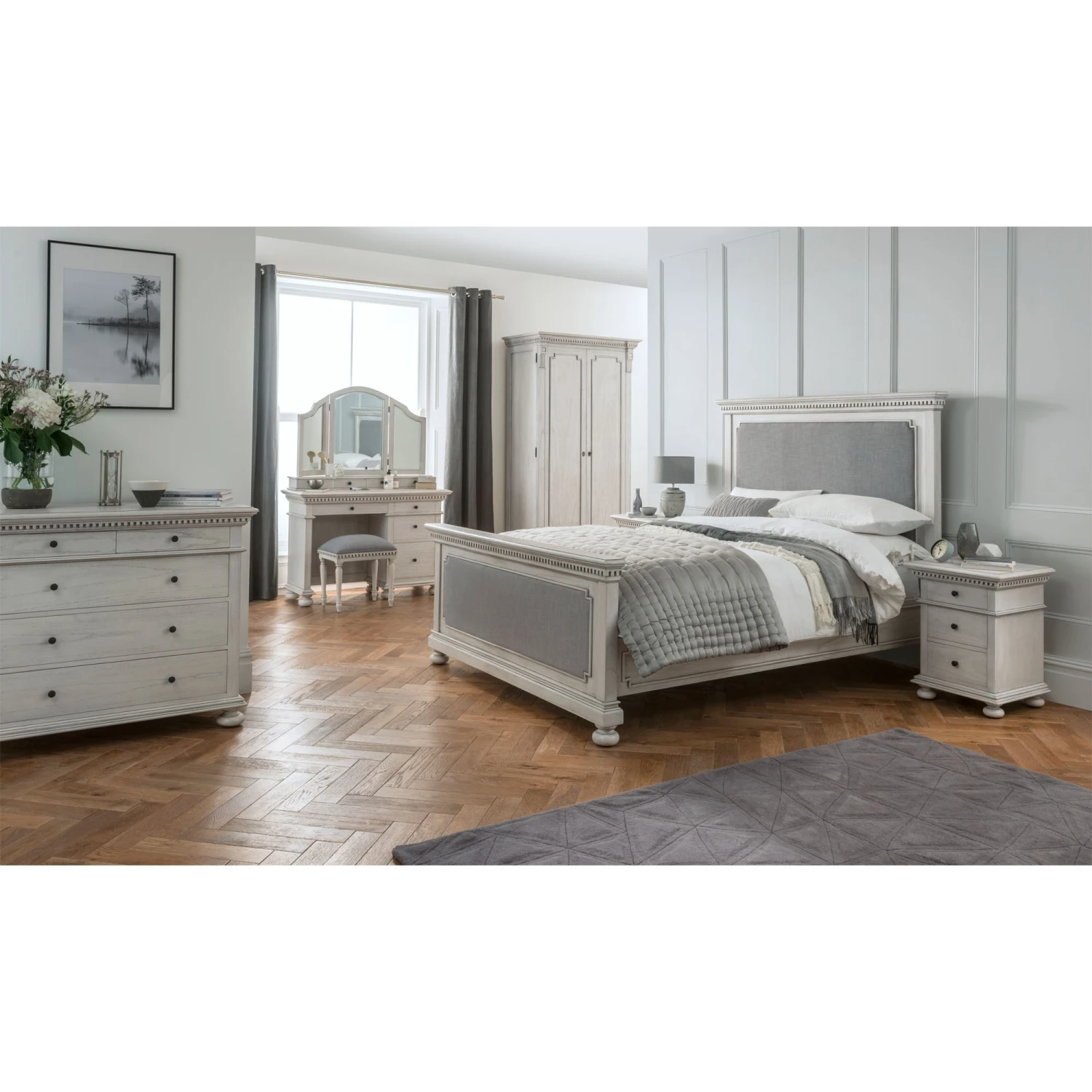 Welcome some French inspired style into your personal haven with this gorgeous antique grey chest, featuring a 2 over 3 drawer design, making it the perfect combination of beauty and practicality all rolled into one. With the antique grey finish which is featured, this beautiful chest will be able to fit into any style of bedroom interior.