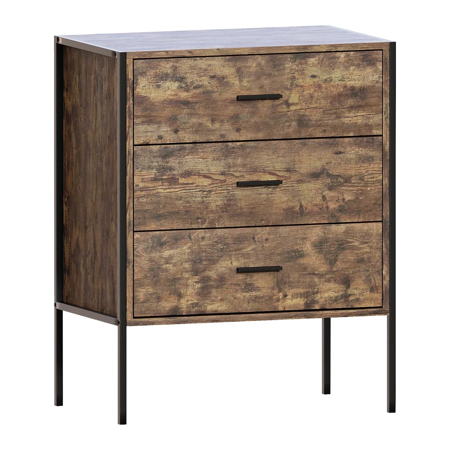 Providing you with the storage you require for your clothing garments, this Brooklyn Dark Wood 3 Drawer Chest is super stylish in appearance, adding an industrial look to your bedroom. Manufactured from wood and metal, it has a dark wood finish that will suit many modern interiors and comes with 3 spacious drawers to neatly fold your clothes into.
