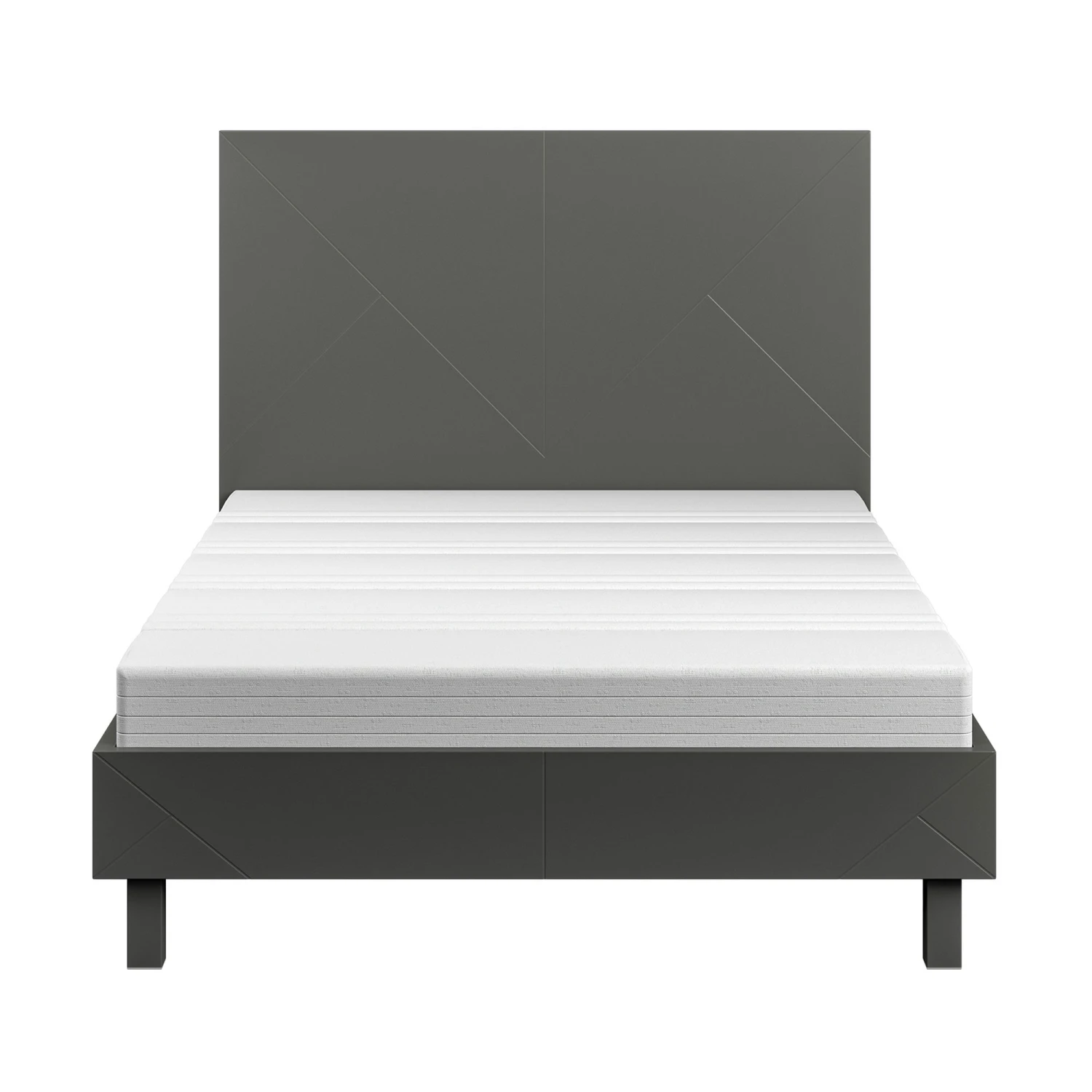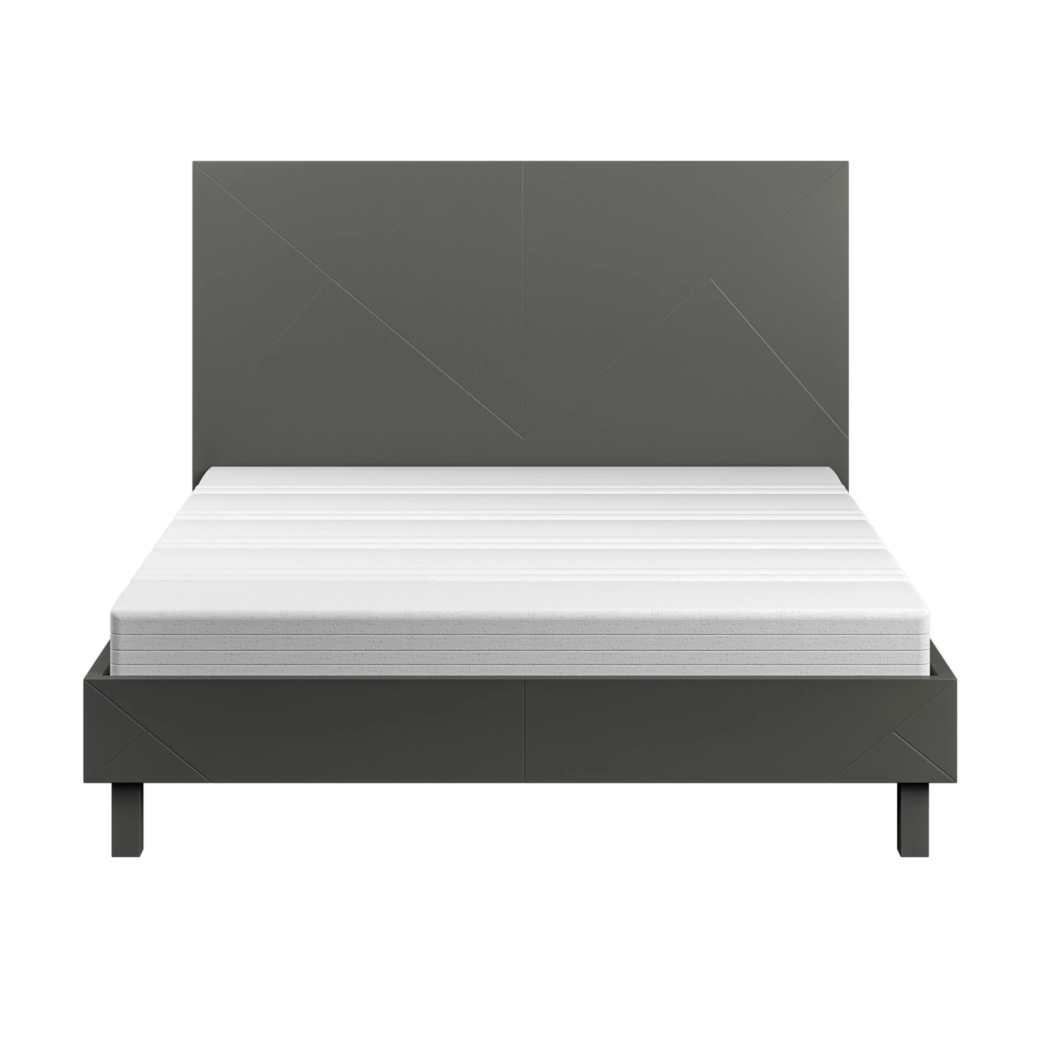 Adding a modern design to your bedroom with this Elstrow Grey Matt Dark Grey Bed available in double or king-size. The bed is crafted with high quality wood in a stunning dark grey tone. The bed features a subtle clean line pattern for a decorative touch. The bed is complete with a large headboard and small wooden legs. Complete the look with the EL Grey Collection and add a uniform look to your home.