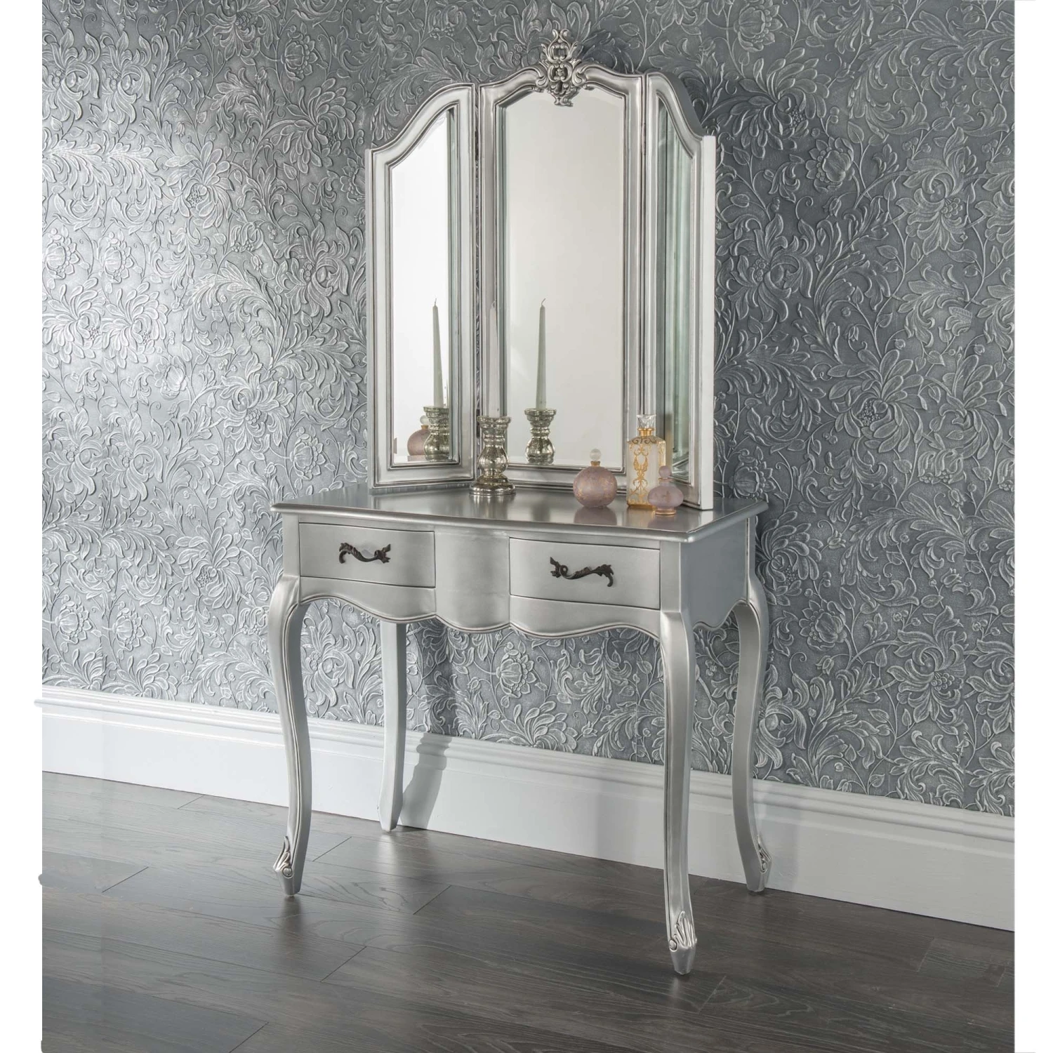A brand new addition to our collection of antique French and shabby chic furniture comes the Estelle collection. Handcrafted and carefully built by experts, this delightful dressing table finished in a stunning silver with a unique and stylish curved front is sure to impress across generations.