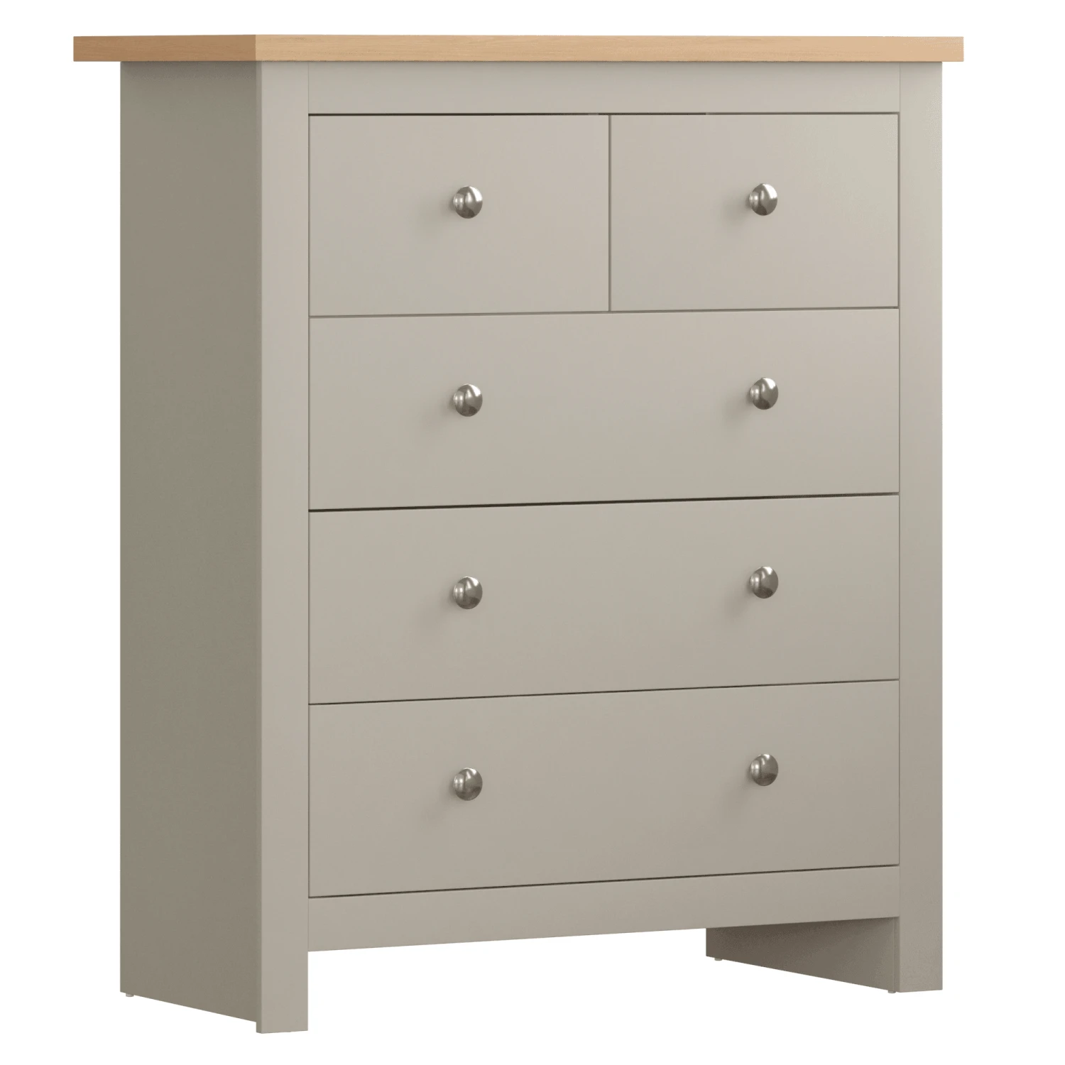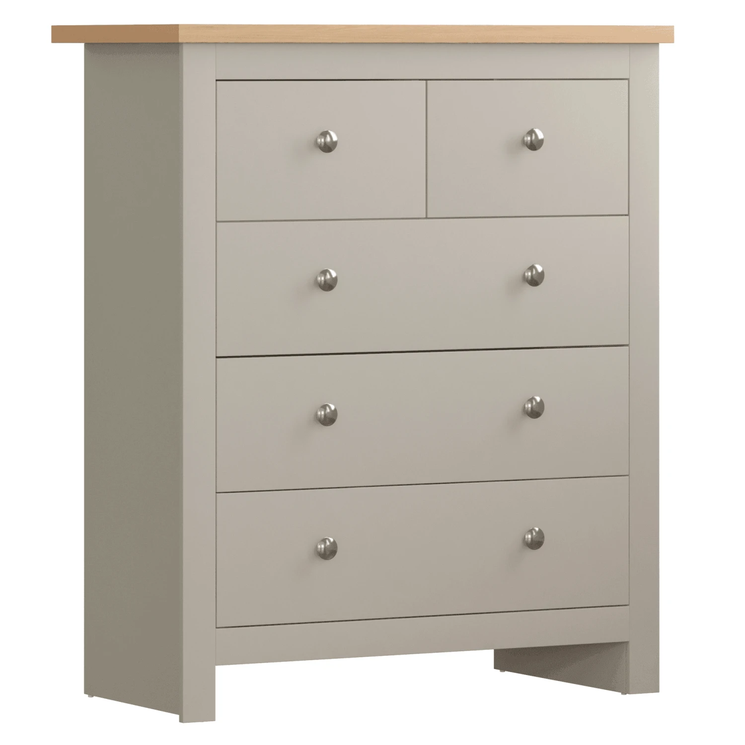 The stunning Arlington 3+2 drawer chest of drawers comes in a subtle light grey for a sophisticated, modern look for your interior. Produced using a beautiful pine wood and finished in this soft grey colour, this is bound to be a winner for any home. When your short on storage solutions, this 3 large drawer and 2 smaller drawer chest of drawers is perfect to store and fold all your clothing items. This 3+2 drawer chest is also available in white and comes from a range that provides other bedroom furnishings.