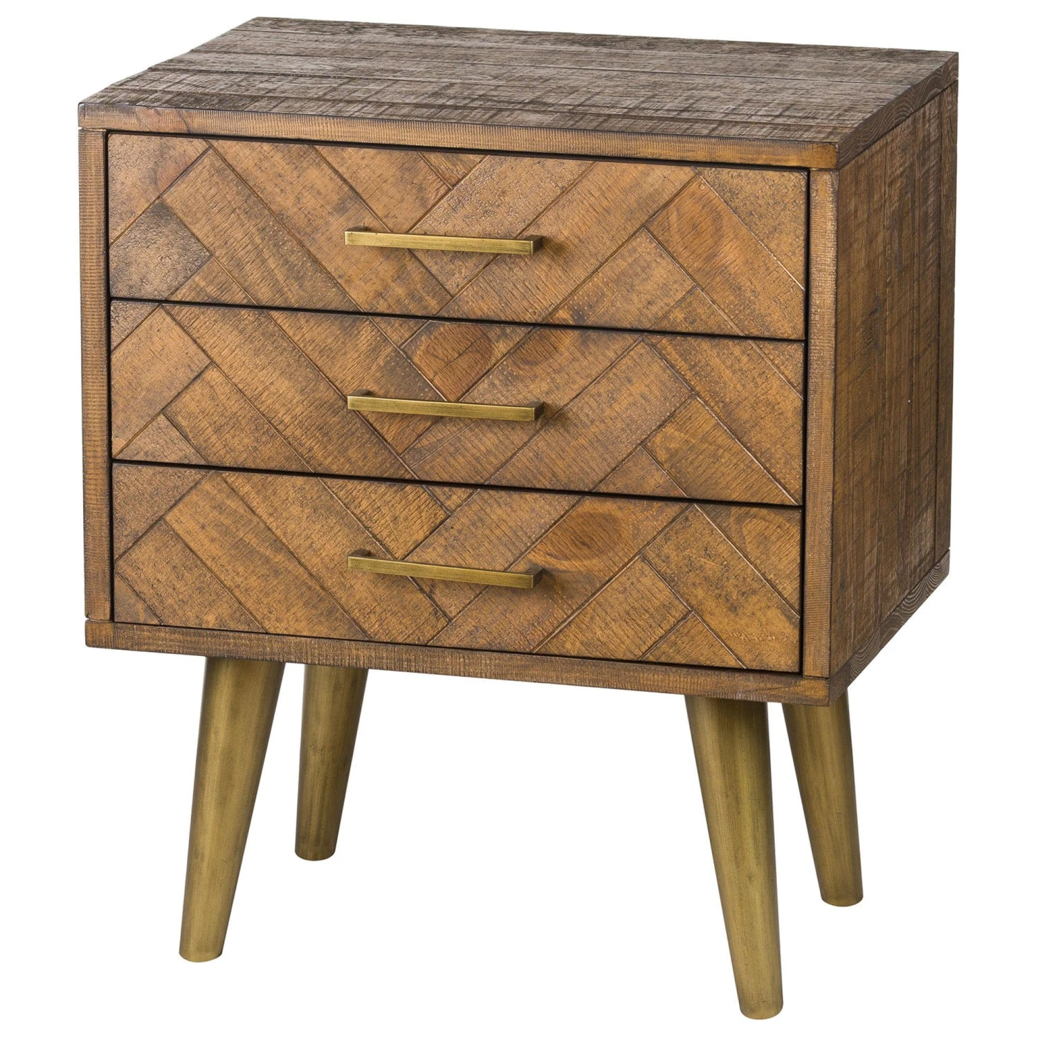 Introducing the beautiful Havana Gold 3 Drawer Bedside Table to our collection. This stunning bedside table will be sure to add luxury and the wow-factor to any room. The parquet design of the drawers make this piece pop and boasts useful storage. The fittings on this wooden bedside are finished in brushed gold.Â