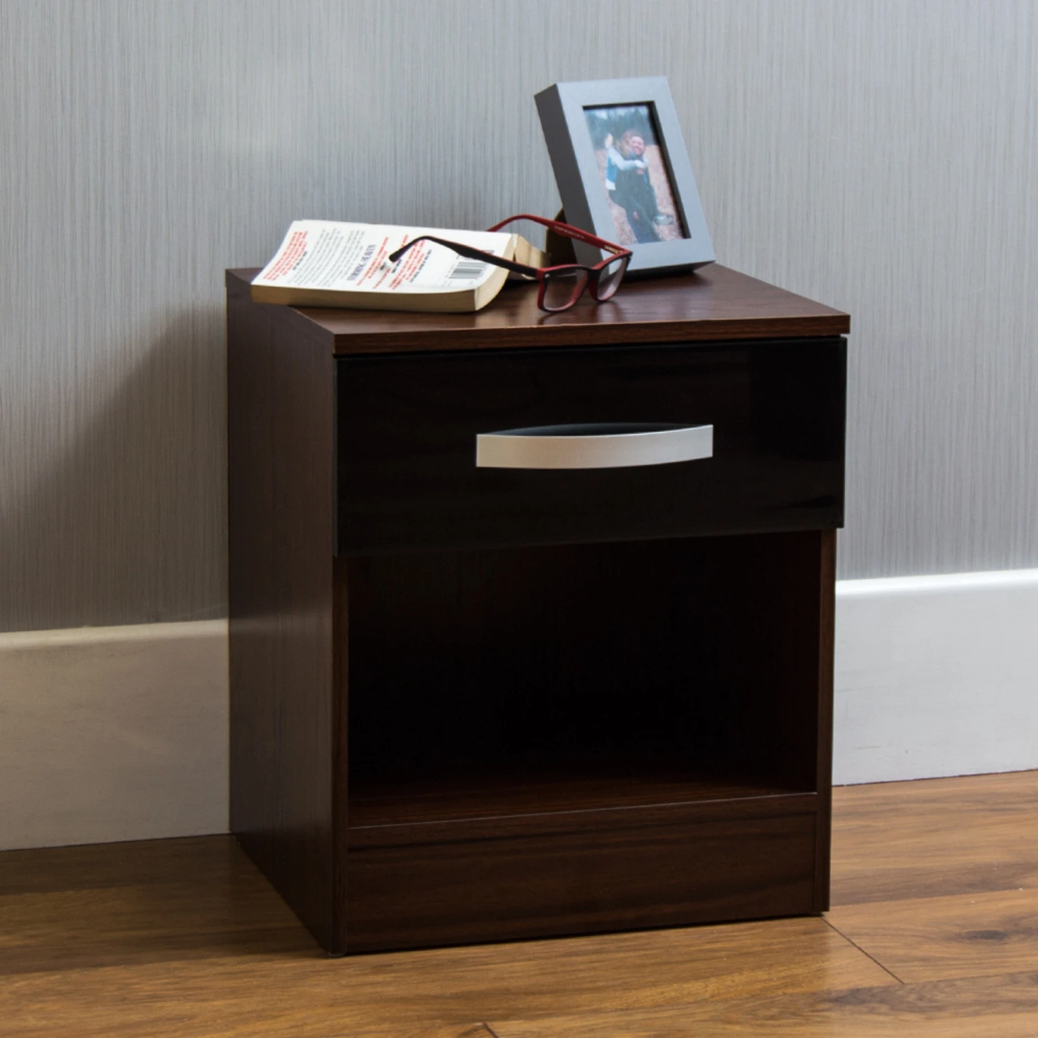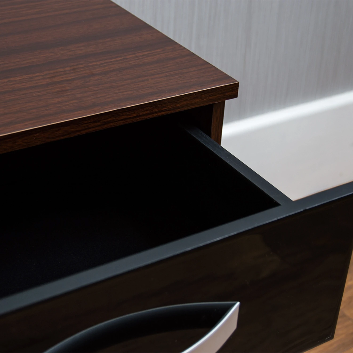 The high gloss finish of this chest is ideal for any home looking for striking modern furniture to help finish off and compliment the contemporary style you already have. Designed for your home, the storage that this chest offers you makes it a must-have for the home. In a black and walnut finish, it’s crafted from high quality wooden materials with a metal handle.