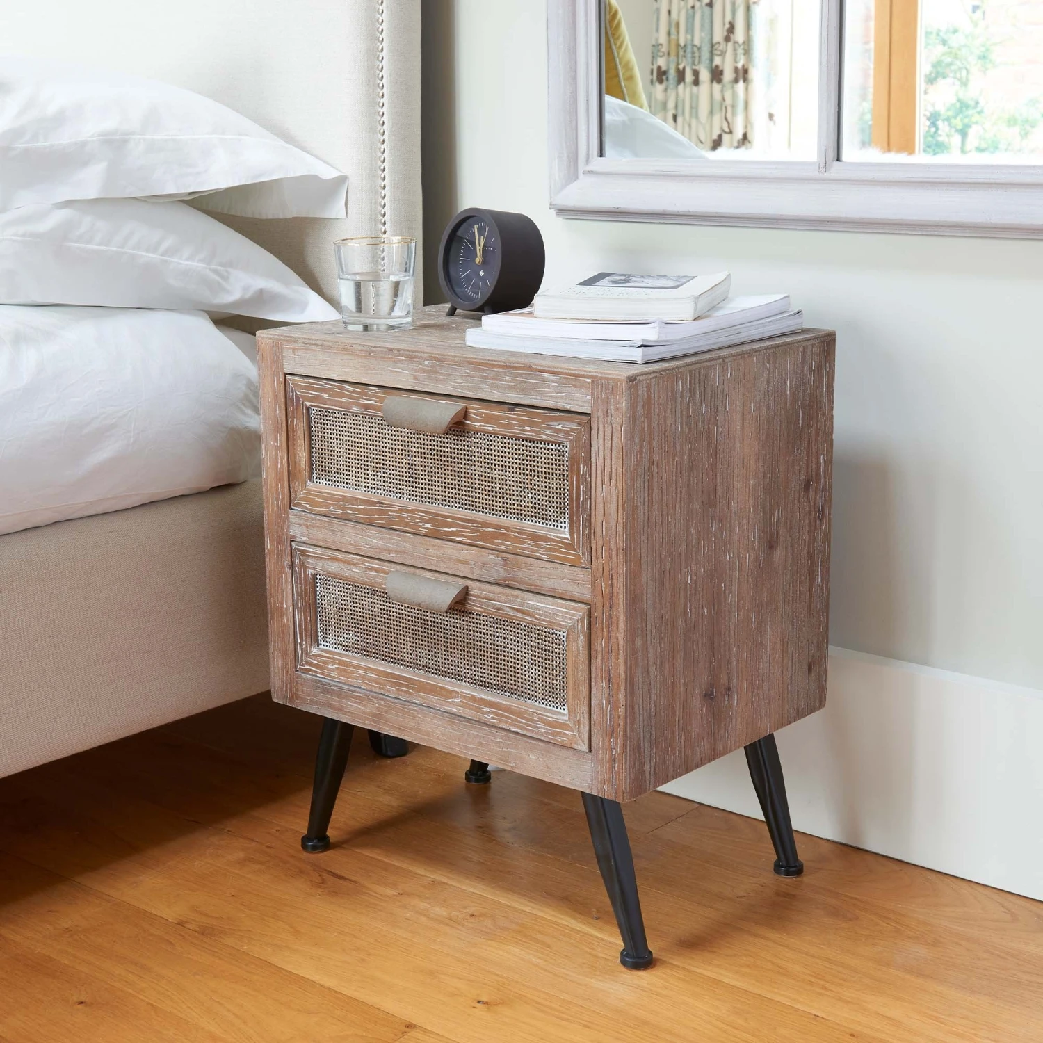 Your hunt is over. The Industrial 2 Drawer Bedside Table is a fantastically stylish piece of furniture that would be a fantastic addition to your home’s bedroom setup. With two storage drawers this bedside table stands upon strong sturdy black metal legs.