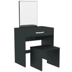 Theย Isla Black Dressing Table is produced using solid pine wood and finished in a bold black paint to create that statement piece for your bedroom. Featuring a pull-out drawer to store all your makeup, hair tools and accessories, it’s a practical piece of furniture that will come in handy. Featuring a simple, minimalistic design which will compliment your bedroom decor, this dressing table is sure to draw attention when you enter with its bold coloured exterior. Complete with matching stool, this Isla Dressing Table will be a staple piece for your room, enabling you to have your own area to get ready in. Available in other colours, it’s a traditionally designed dresser that is a popular choice amongst bedroom interiors.