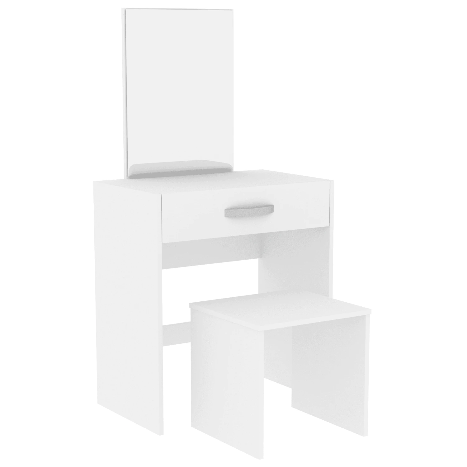 Thisย Isla White Dressing Table is perfect to add to your bedroom furniture to create your own little beauty corner. With a fixed mirror and matching stool, it has everything you need to be able to doll yourself up and getting ready for a night on the town. Manufactured using high quality solid wood, it provides a strong and sturdy frame, ensuring a long-lasting build. With its practical storage, this Dressing Table provides a pull-out drawer that you can keep your makeup and hair tools in for that all important event you have coming up. Styled in a bright white, it will compliment your bedroom decor and brighten up the room. Also available in 3 other colours.