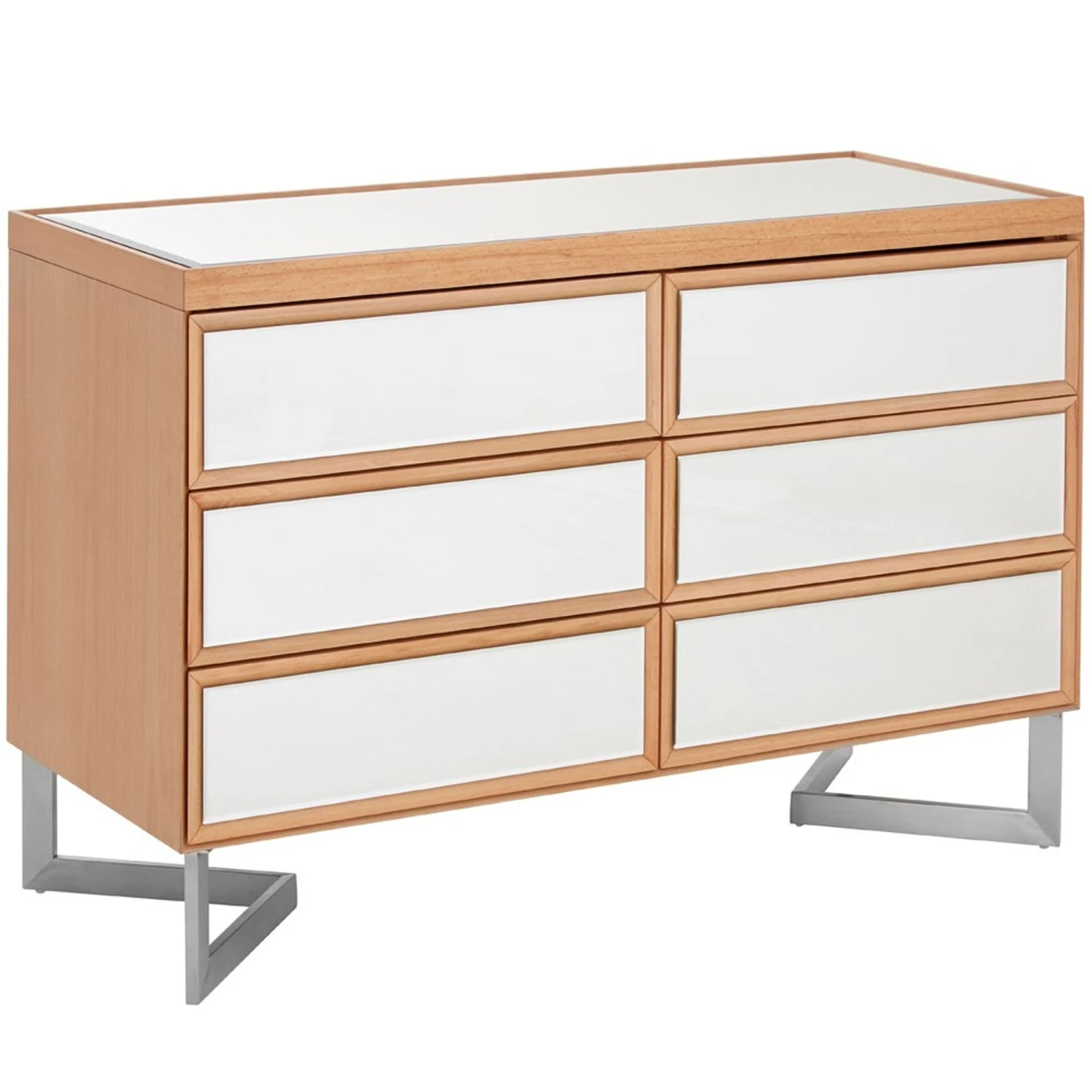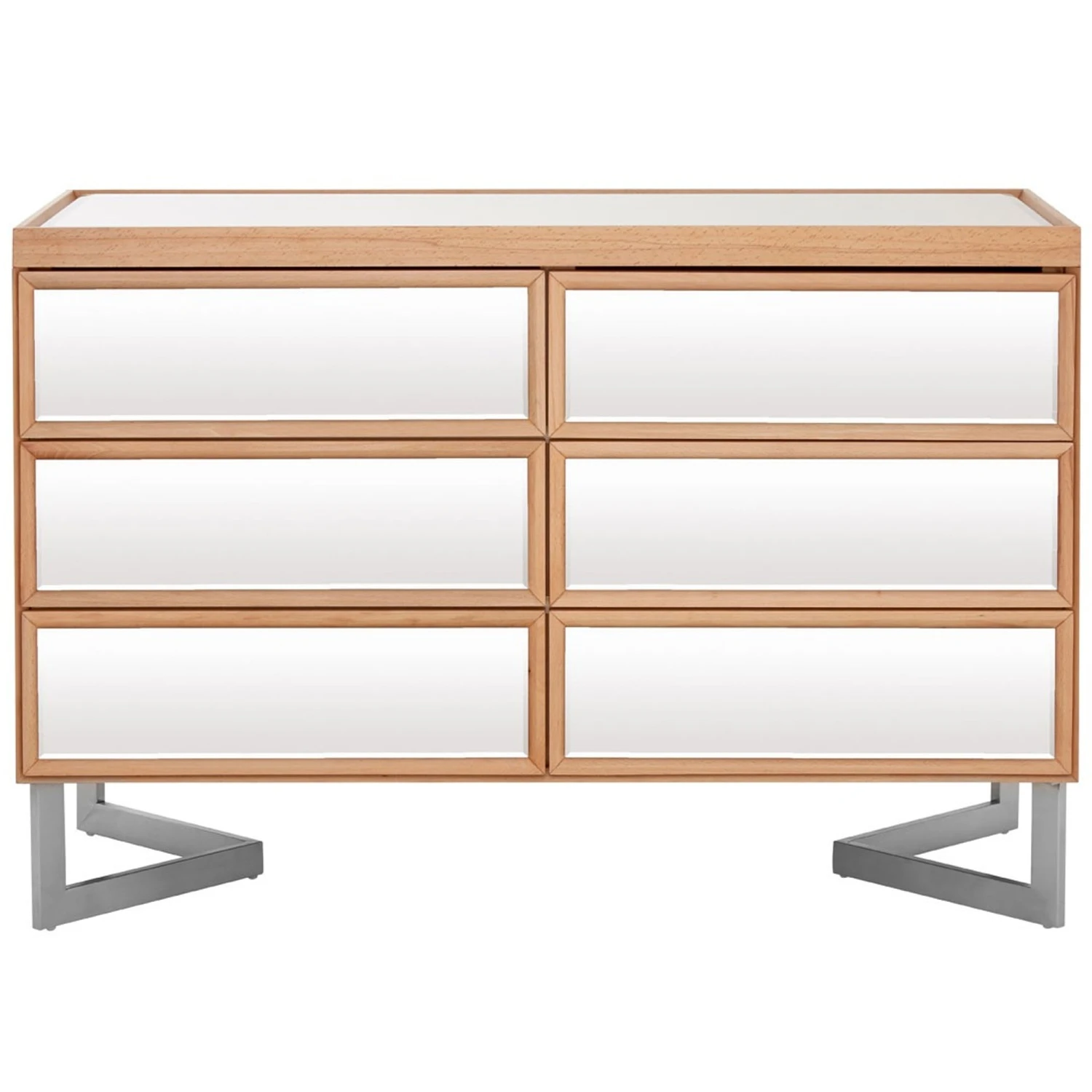 Add a contemporary style to your home by introducing this gorgeous Kensington Townhouse 6 Drawer Chest. This chest of drawers has a beautiful design that perfectly combines a modern and sophisticated style. The minimalist and modern style is complemented by a lovely combination of Beechwood, MDF, Metal and Mirrored Glass to create a very contemporary piece.