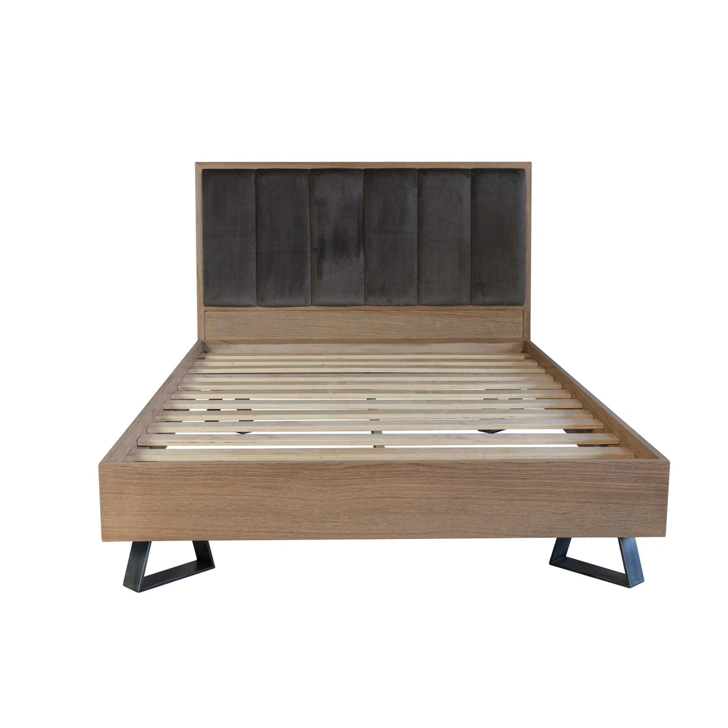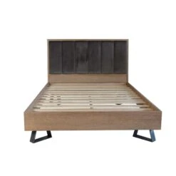 This Lenox Fabric Bed is a luxury addition to your bedroom at home with it’s sophisticated contemporary design that will make a great focal point for your room. Made from solid oak wood in a natural finish, it has a beautiful grey fabric headboard that has panelling detail to add a modern touch to this simple bed. Stood upon grey metal stands in each corner, it provides stability and a strong, durable build that gives a top quality finish. With a slatted base design for comfort, this bed will give your room a fresh new look. Part of the Lenox Bedroom Range, there is matching furniture available.