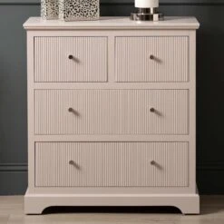 The Lindon 4 Drawer Chest Cabinet Summer Grey are crafted from pine wood in a stunning summer grey tone bringing elegance to your home. The front 4 drawers all feature a grooved design and come with a choice of silver or gold handles to suit your interiors. Style in your bedroom for plenty of storage, the cabinet will look great with matching items or as a standalone piece.