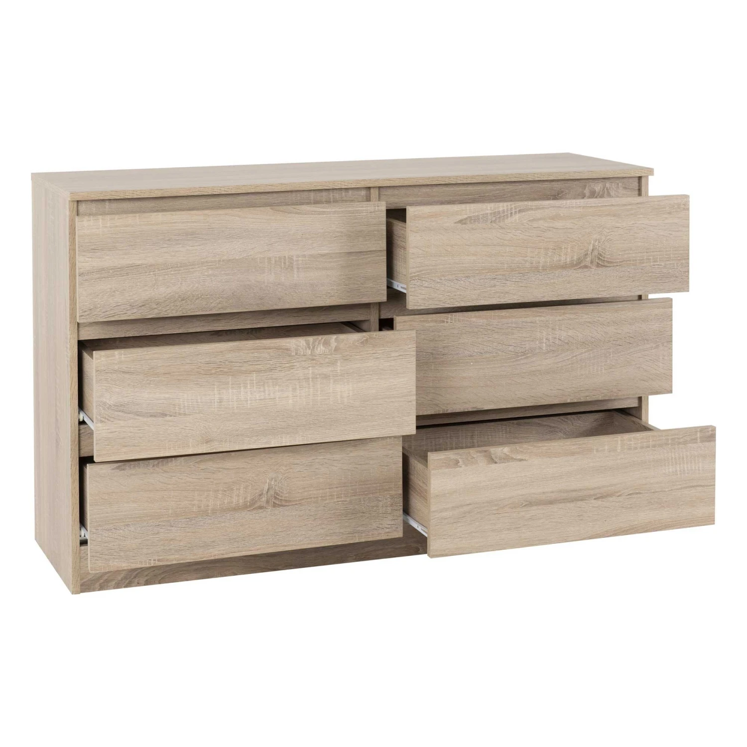 Are you someone who loves buying new garments, but are forever running out of space to store them? Look no further than this Malvern Sonoma Oak 6 Drawer Chest. Providing plenty of spacious storage in its easy glide out drawers, it will help you to keep your living space more organised. Coming in a beautiful Sonoma oak finish, it’s complimentary to a range of interiors and is also available in 3 other colours. Modern in its design, it has a large surface area on top, giving you extra space to display perfumes, cosmetics and other accessories, encouraging better storage solutions.