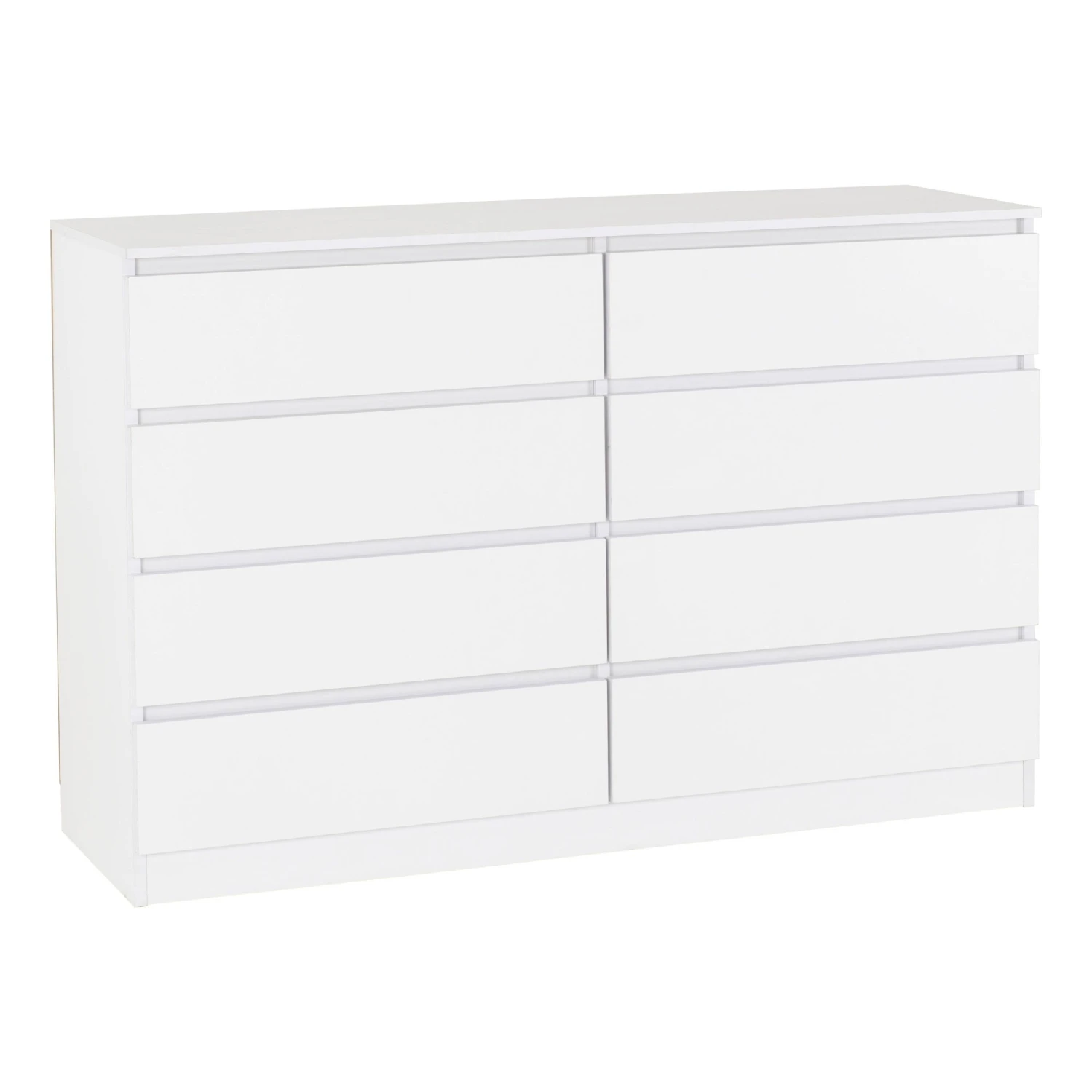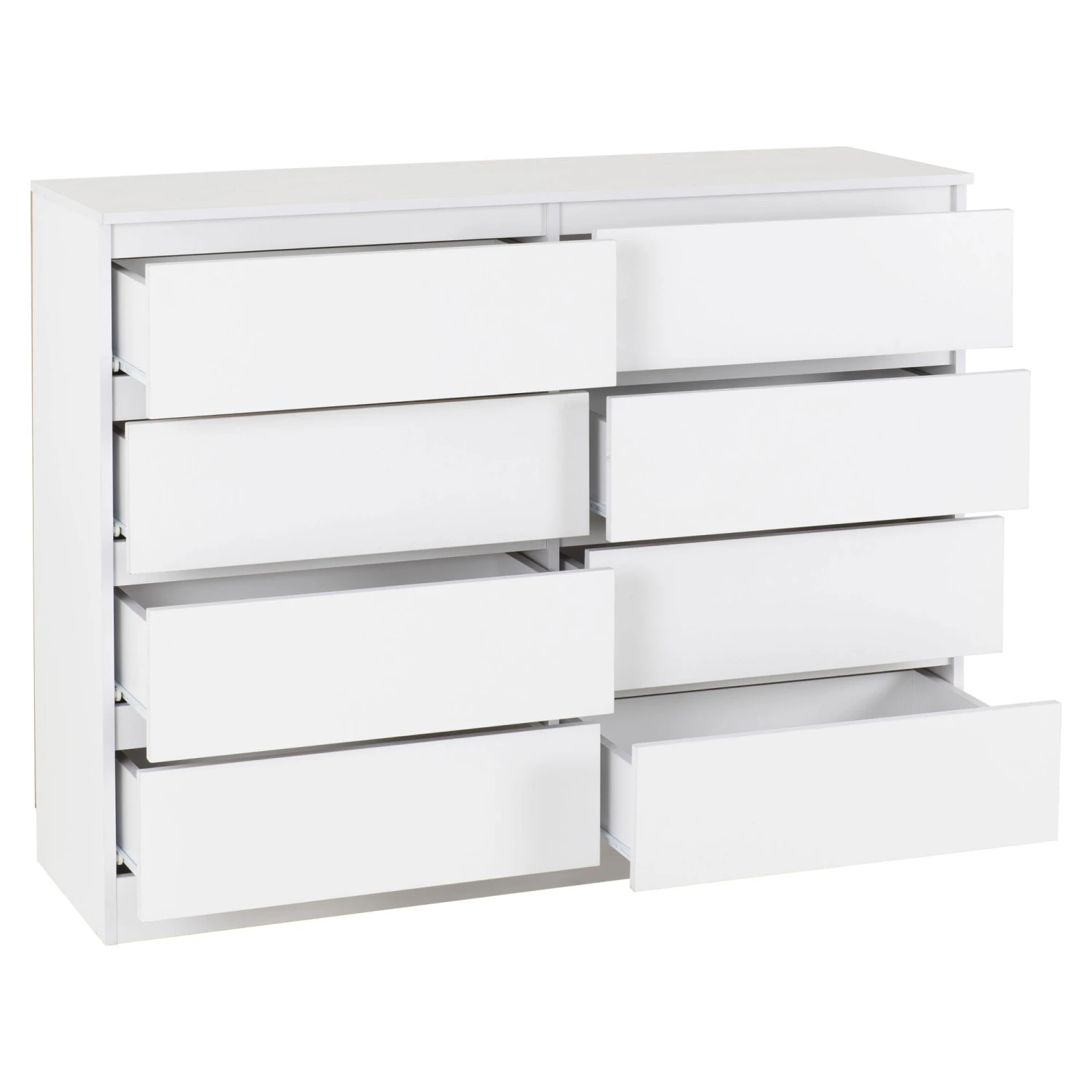 Maximise the storage space in your bedroom with this Malvern White 8 Drawer Chest. Coming with spacious pull-out drawers, it has 8 in total, ensuring a place for all your clothes and belongings. Crafted from high quality wooden materials and in a white painted finish, it’s modernly designed to fit in with almost any interior decor. With 3 other colours to choose from, this chest of drawers set will be a great addition, ensuring a practical storage solution without taking up additional floorspace.