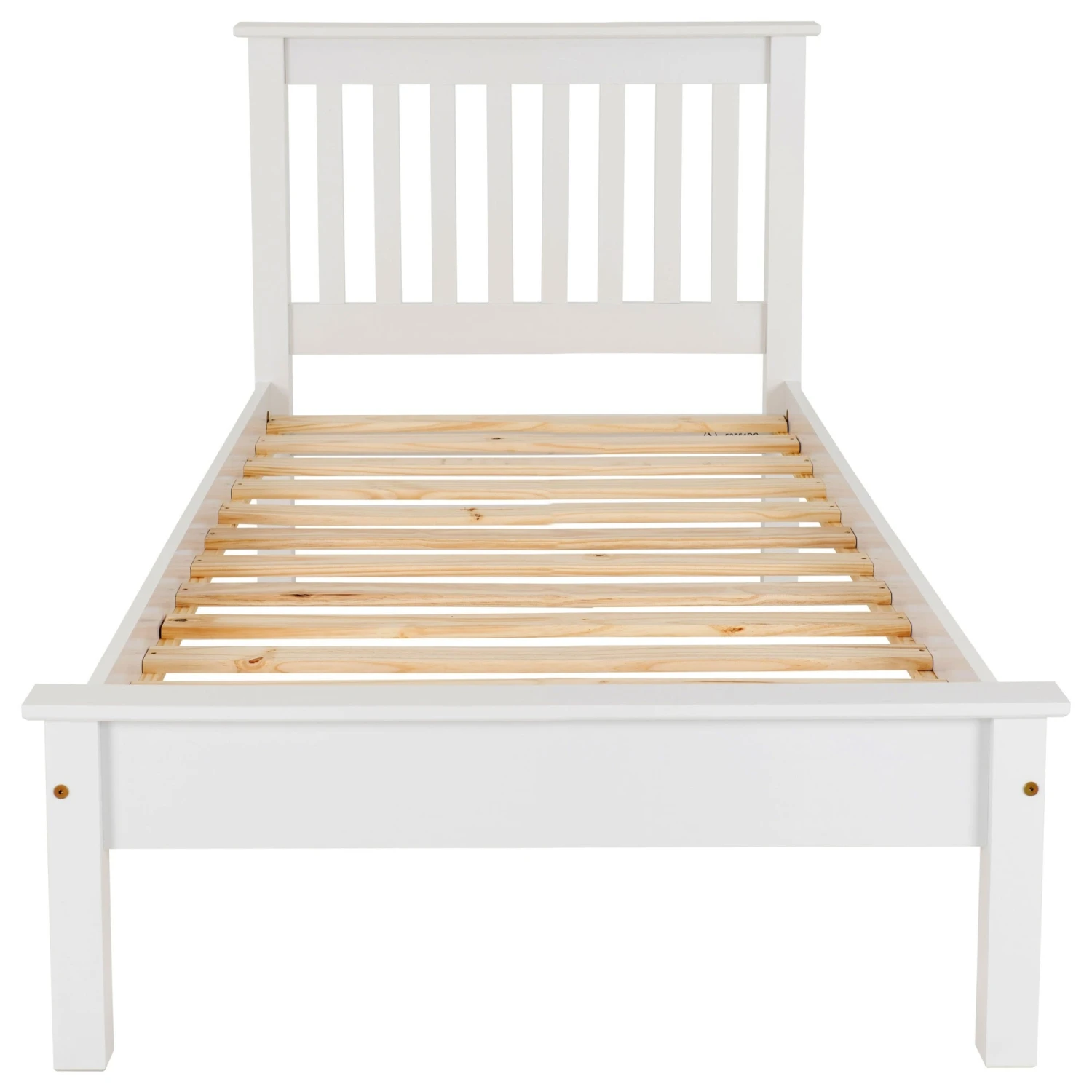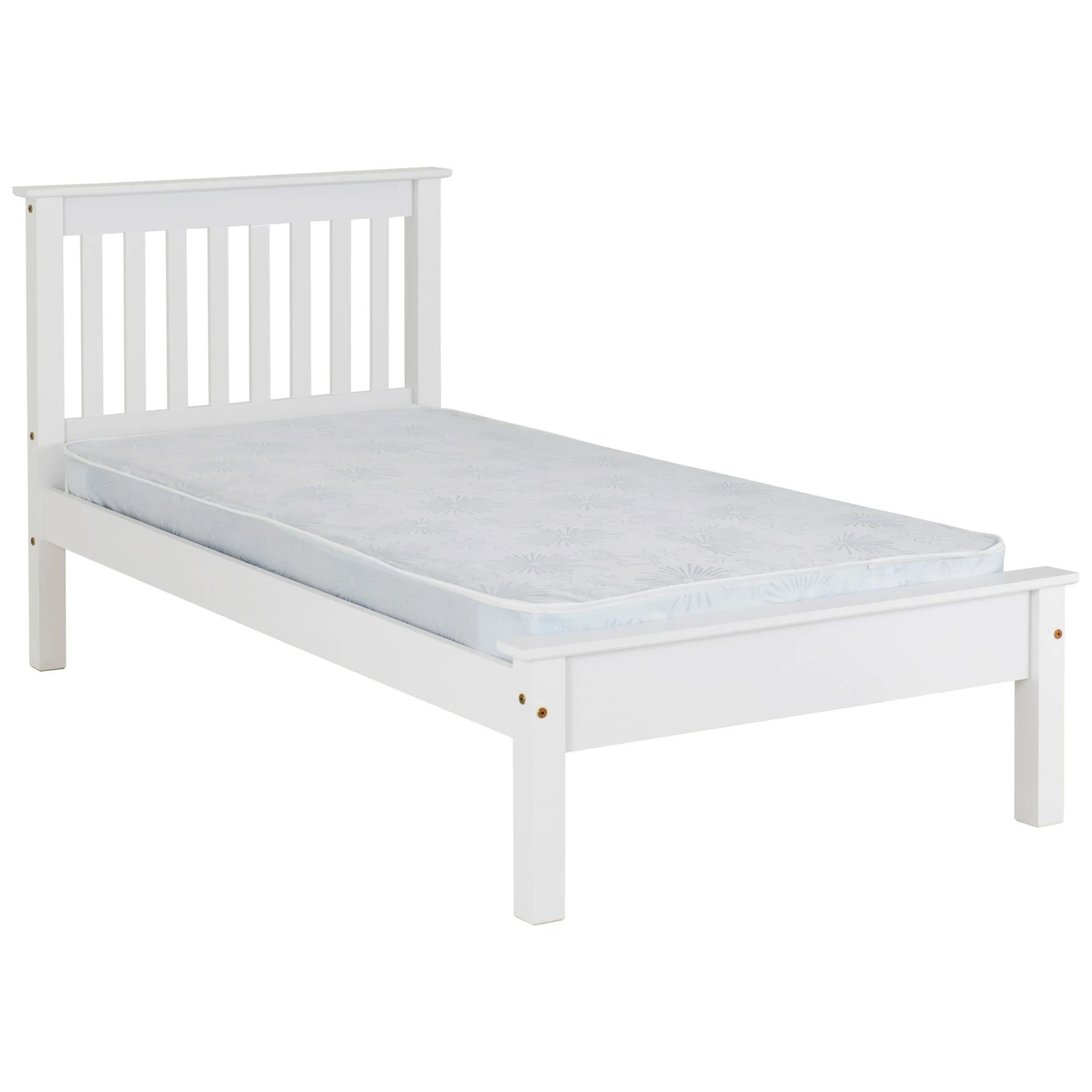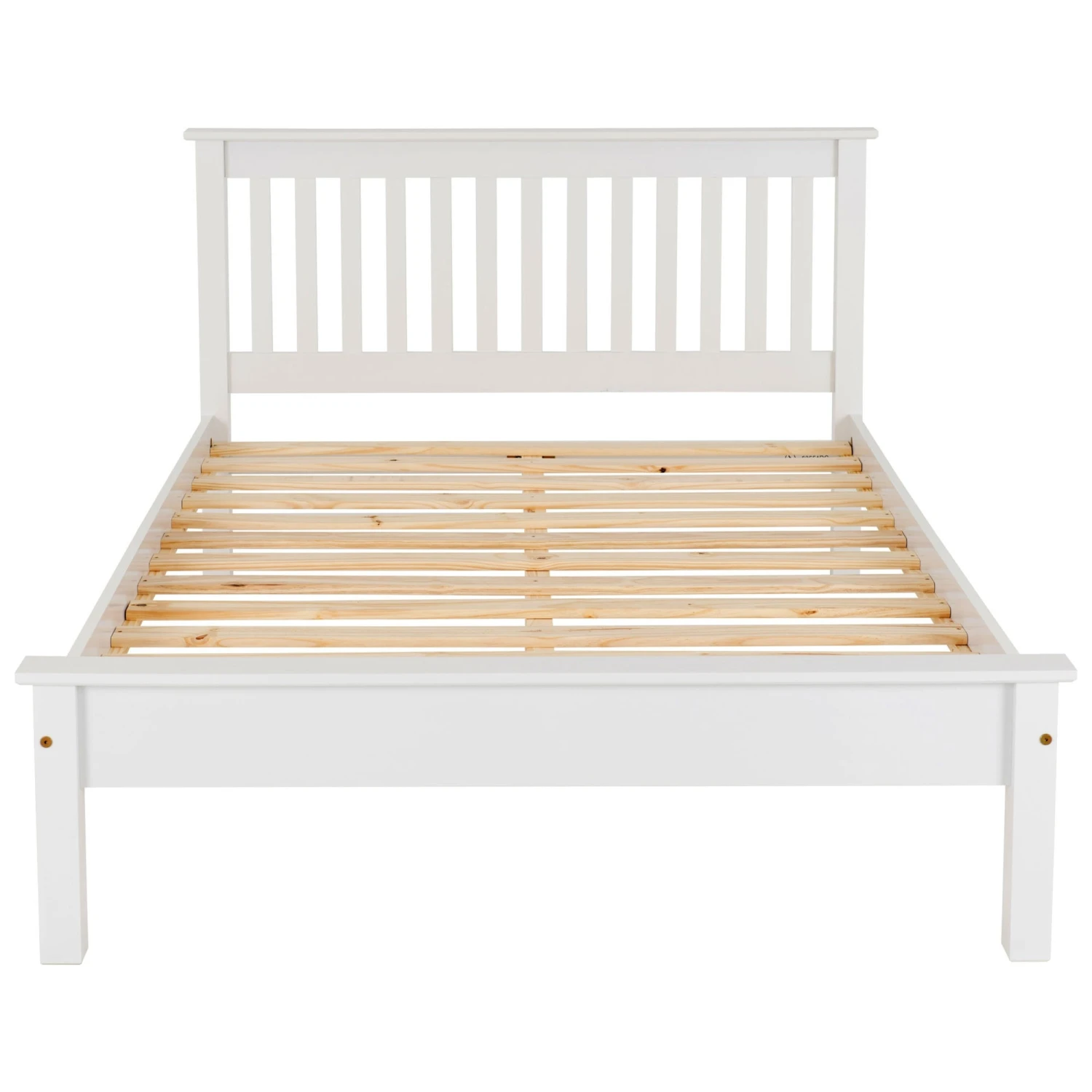 A simple bed frame that is available in a range of different sizes, this Monaco White Low Foot End Bed will make a lovely modern touch to spruce up your bedroom interior with simplicity and minimalism. Crafted using an MDF frame, it has a pine slatted base that makes for comfortable sleeping and is finished in a lovely painted fresh white shade. Complete with a low foot end, its durability and hard wearing structure ensures it’s an integral bedroom furniture piece that will last many years.