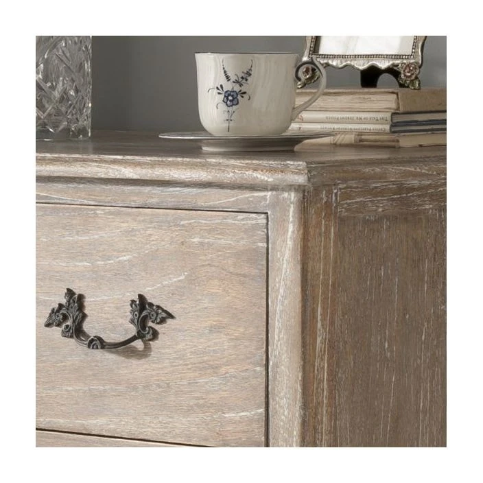 Our exciting range of French furniture now includes our new range addition, the Montpellier Blanc Collection. Made from solid Mindi wood, this chest has everything you need in terms of aesthetics and practicality. This stunning chest of drawers works well co-ordinated along side other matching pieces such as our shabby chic furniture or simply as a statement piece on its own.