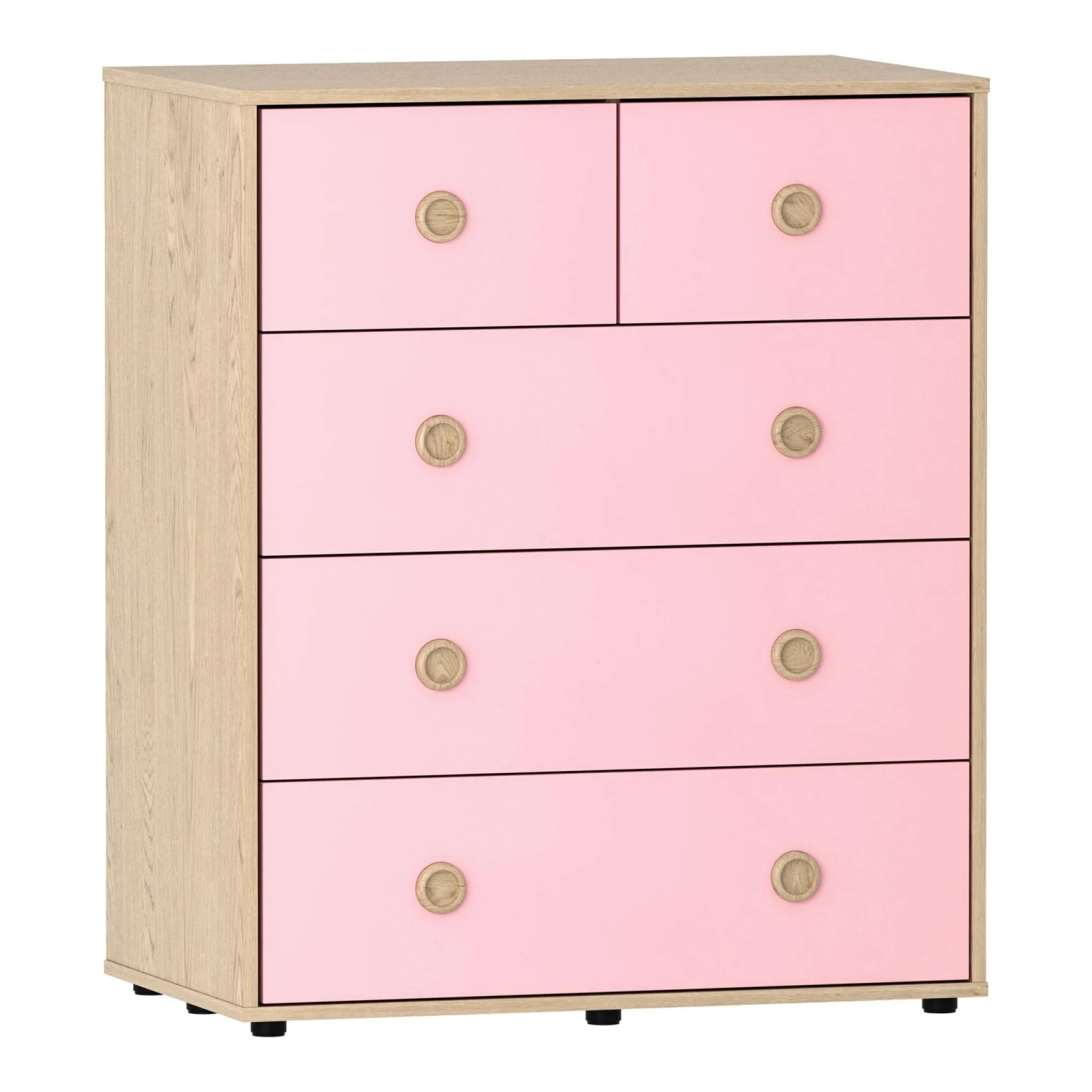 Bright and modern, this Neptune Pink & Oak 5 Drawer Chest is not only practical, but adds colour and style to really upgrade your home interior. In a beautiful contrasting oak and glossed pink finish, it will create a statement feature within your bedroom or spare room, offering practical storage solutions to organise your clothes, bedding, or towels. Crafted from solid wood with 5 drawers, it has everything you need to store your household items in, making it a piece of furniture you won’t want to miss out on!