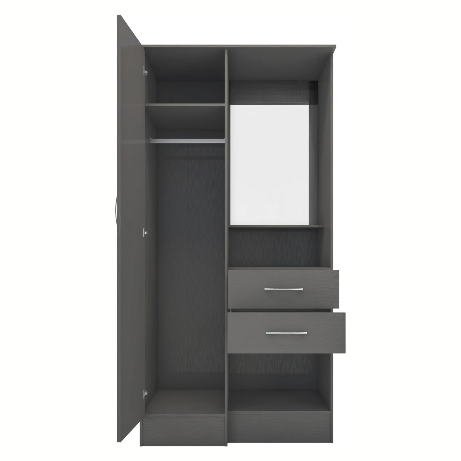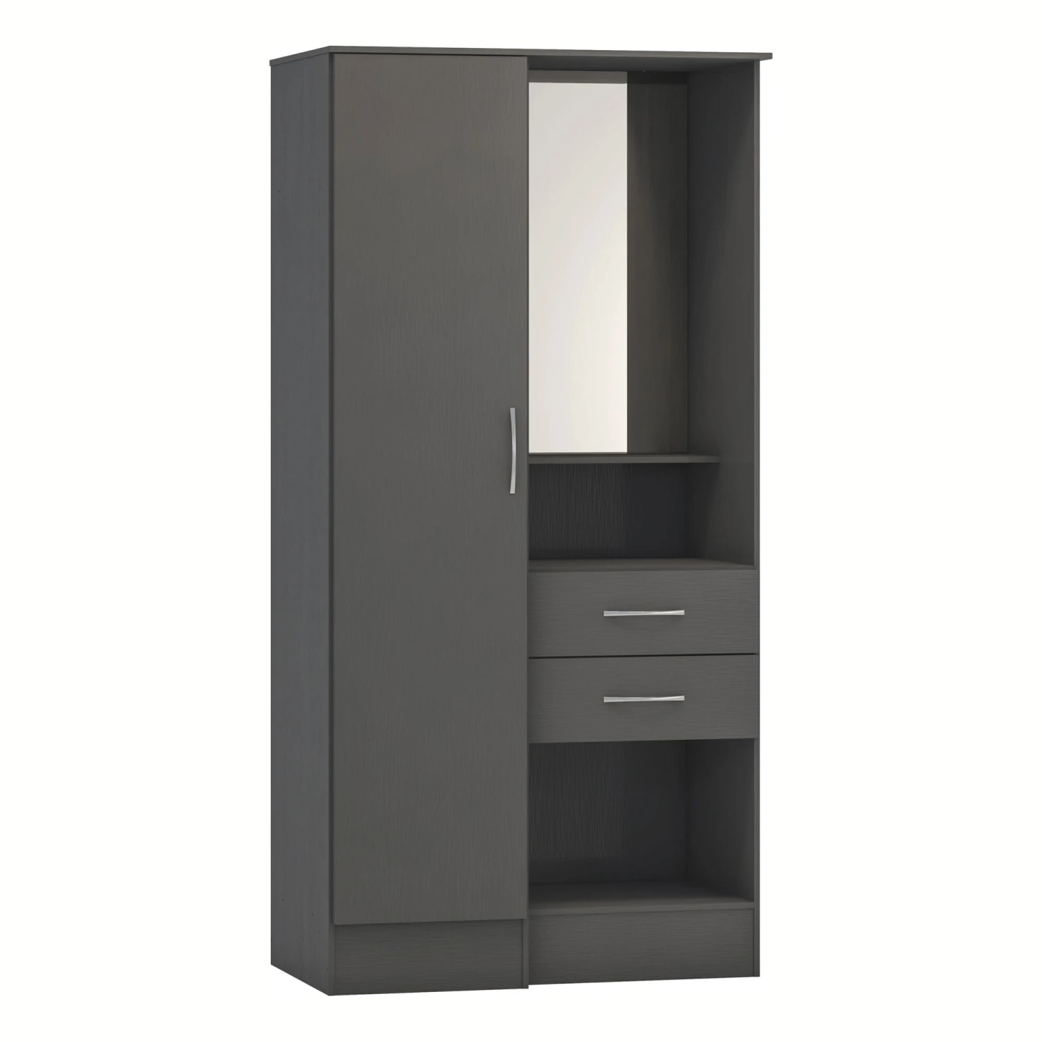 A stunning new addition to our range of bedroom furniture, the Nevada 3D Effect Grey Vanity 1 Door Wardrobe will add a contemporary, stylish new look to your bedroom. With a 1 door design featuring a mirrored door front, it doubles up as a vanity unit with 2 drawers for storage, shelf space and a mirror insert. Manufactured to be hard-wearing, it makes for a practical and durable piece of bedroom furniture that you won’t want to miss out on!