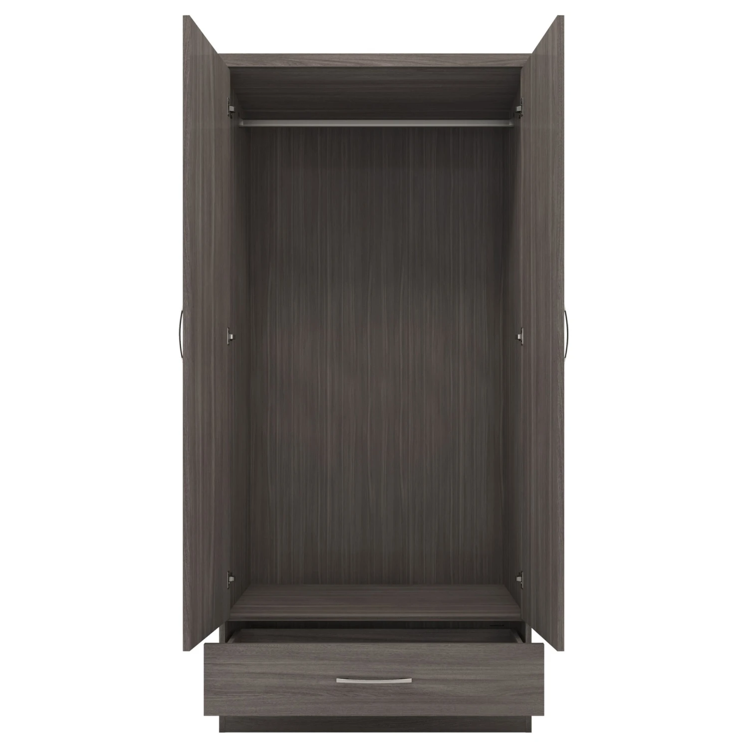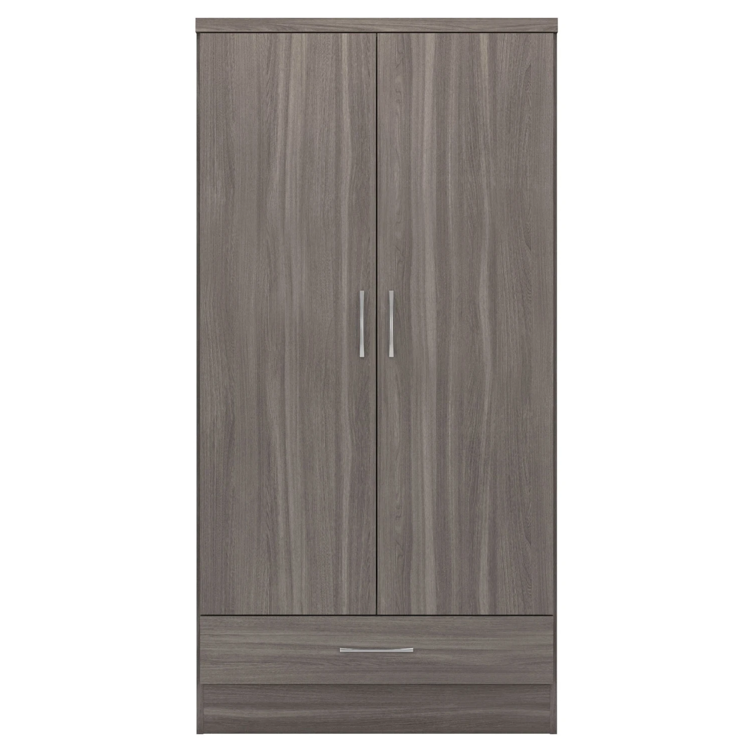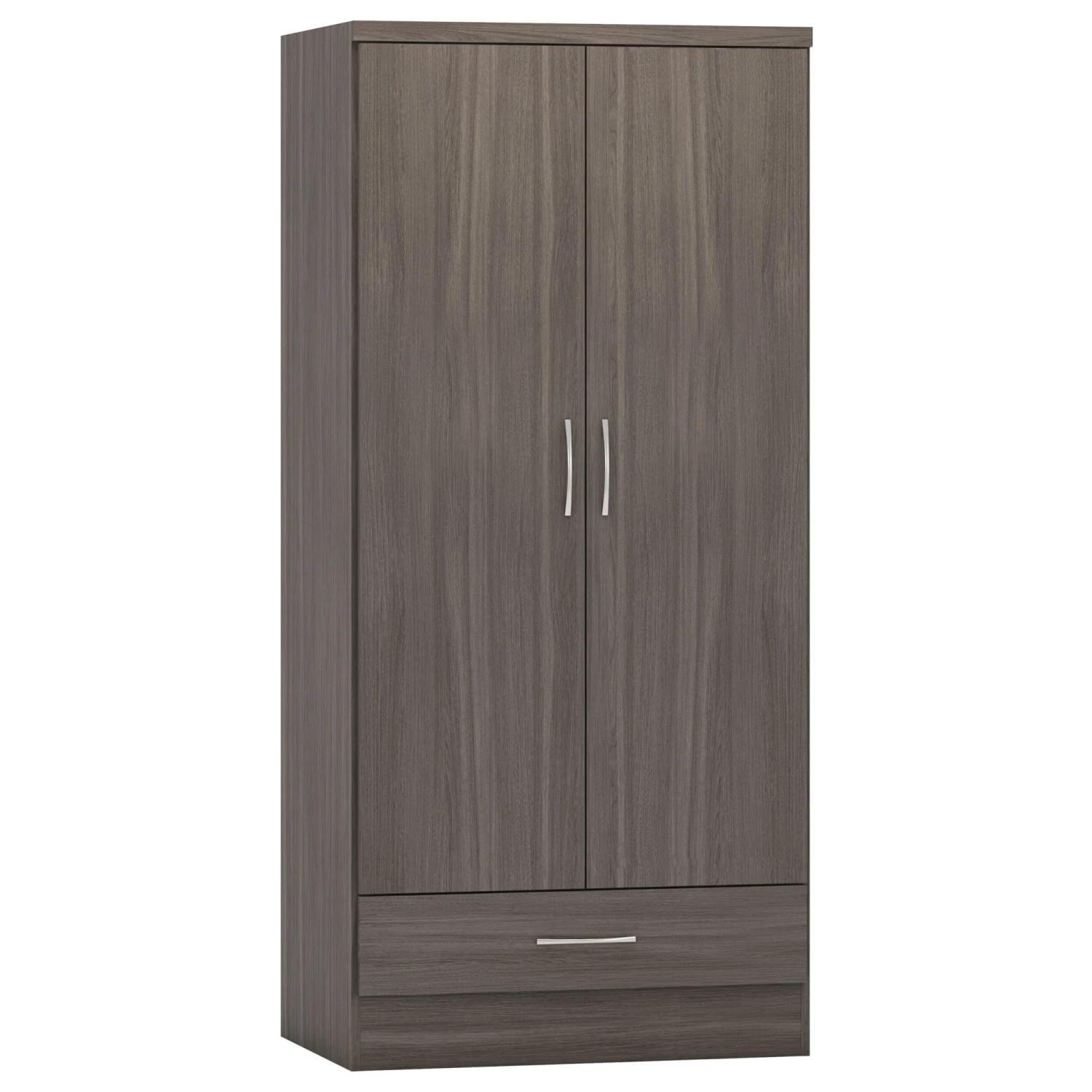 Are you someone who loves their fashion but hasn’t enough room? Get your hands on this beautiful contemporary designed Nevada Black 2 Door 1 Drawer Wardrobe. Crafted to be long-lasting and durably built, it comes with a 2 door, 1 drawer design and has an internal hanging rail for you to hang your clothing items. In a bold black wood grain finish, it creates a rustic style bedroom wardrobe that will be a staple piece for creating additional space. Complete with long metal handles for easy access to its internal storage, you will now be able to hang those extra pieces.