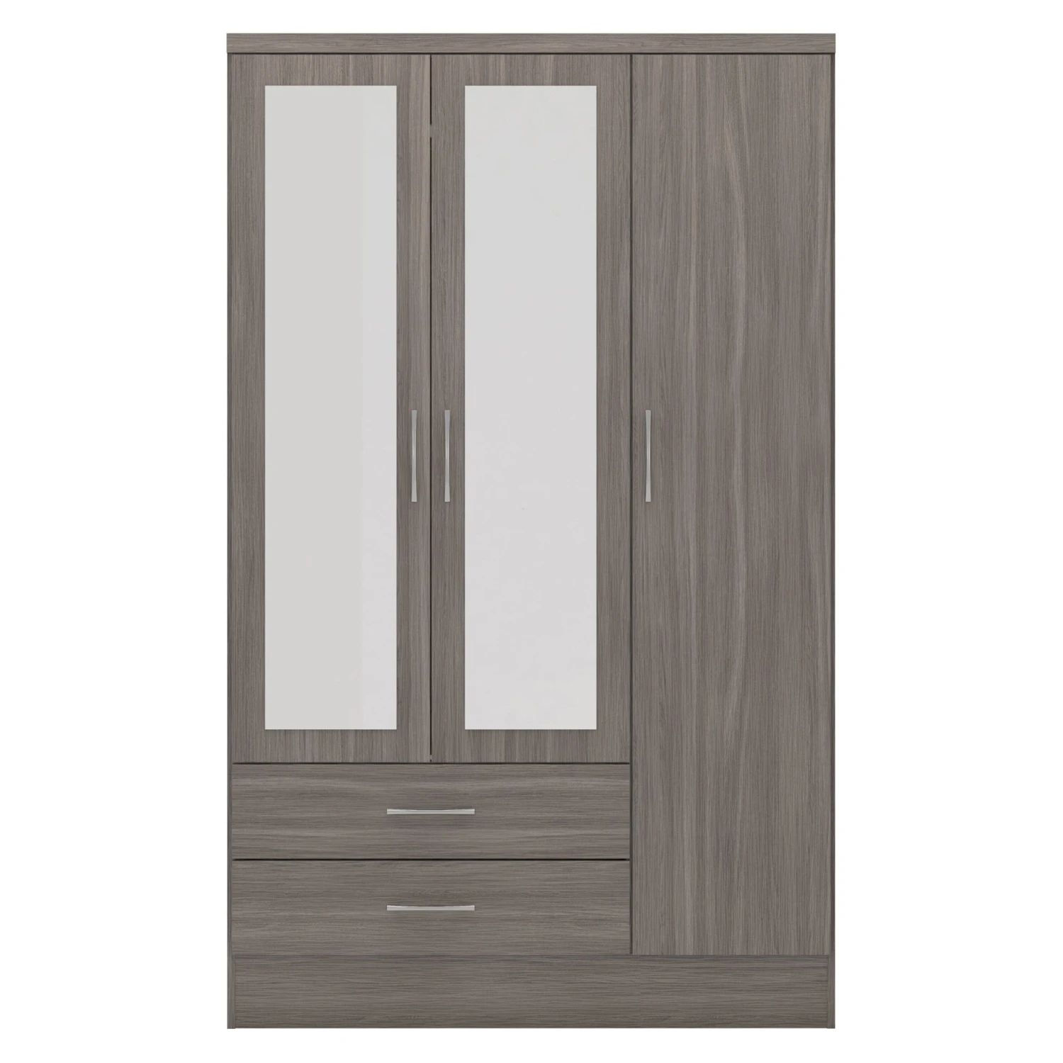 Are you forever running out of space due to too many clothes? Why not introduce this super stylish Nevada Black 3 Door 2 Drawer Mirrored Wardrobe and upgrade today. Featuring 3 doors of cupboard space that have 2 separate internal hanging rails, it ensures additional space for your clothing. It also comes with 2 drawers at the bottom for foldable items to neatly tuck them away and can be suitable for accessories, shoes, or clothing garments. Coming in a black wood grain finish to add character and style to your room, it will be a practical addition that saves on floor space with its compact design. Complete with mirror panelling, it’s ideal for checking out your outfit before leaving the house.