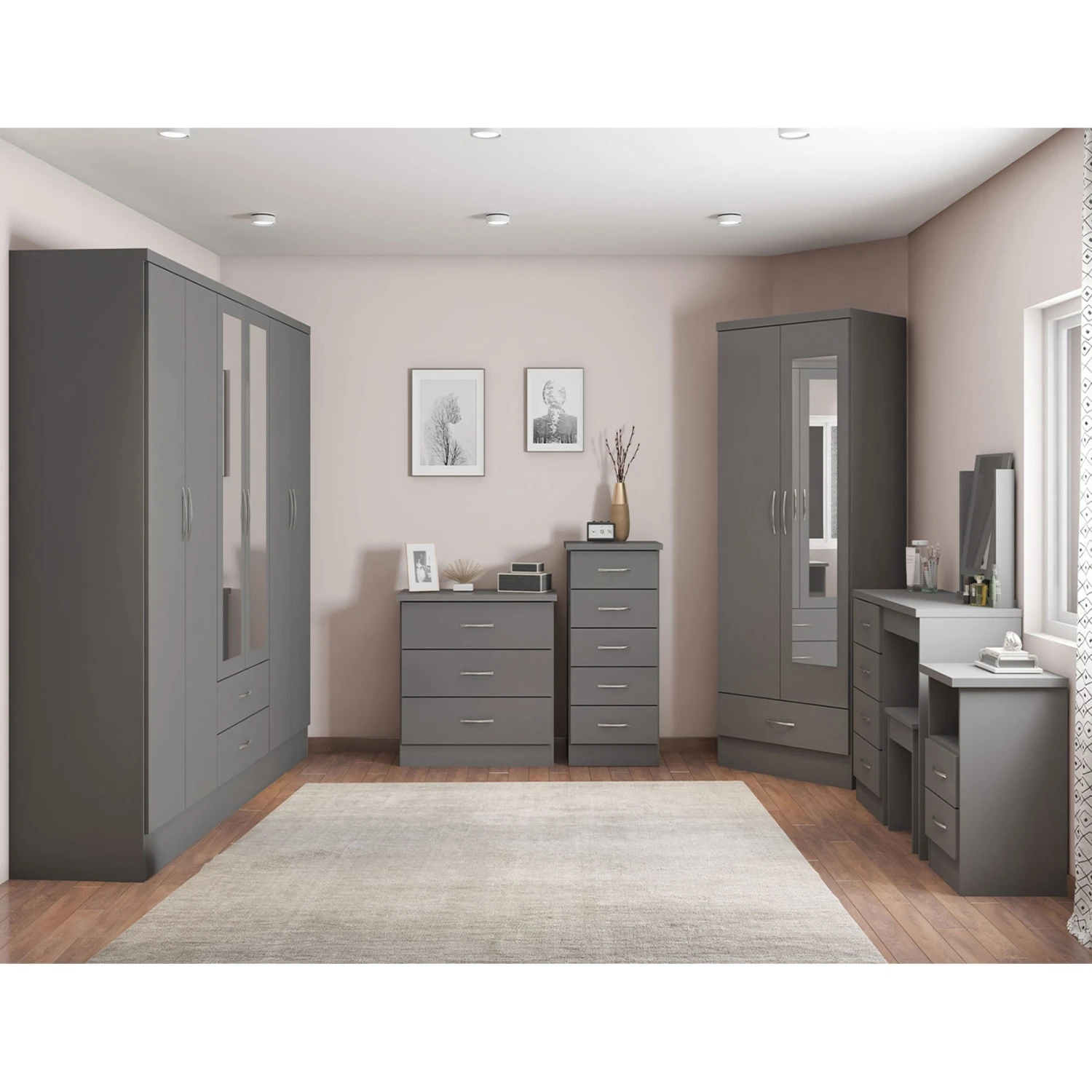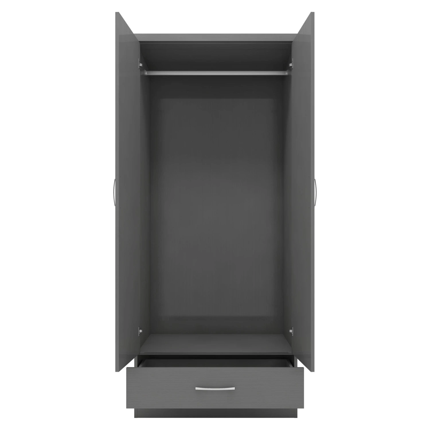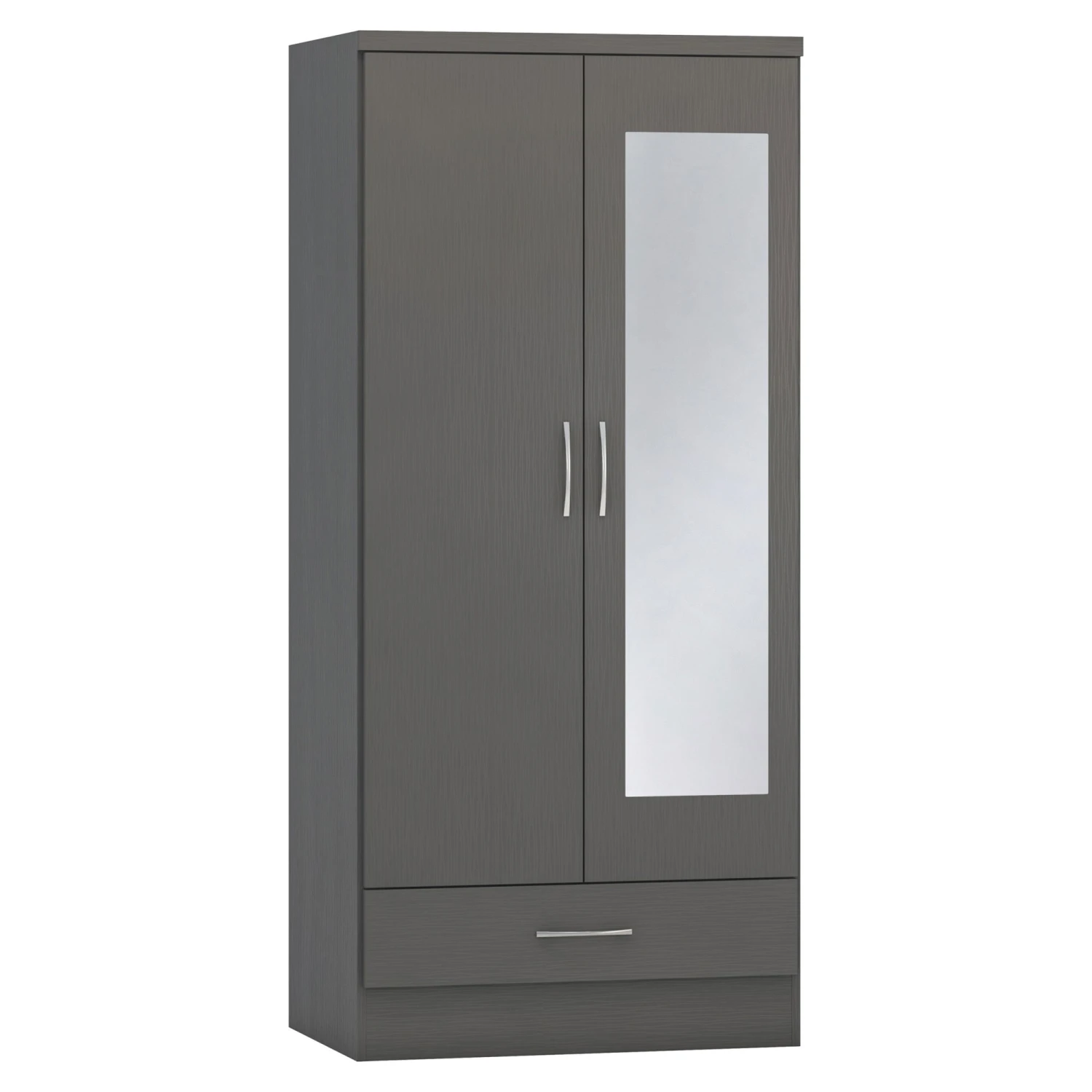 Incredibly stylish, this Nevada Mirrored 3D Effect Grey 2 Door 1 Drawer Wardrobe will provide your bedroom with a contemporary style and sufficient storage solutions for all your clothing. Coming with 2 doors with an internal hanging rail, it also features 1 drawer below that comes on a metal runner for easy glide out access and is complete with long metal handles. The 3D effect grey finish ensures a lovely sleek smooth look and designed with a mirrored door front gives you the opportunity to check out your outfit whilst getting ready for the day. A practical addition to any bedroom, it will not disappoint!