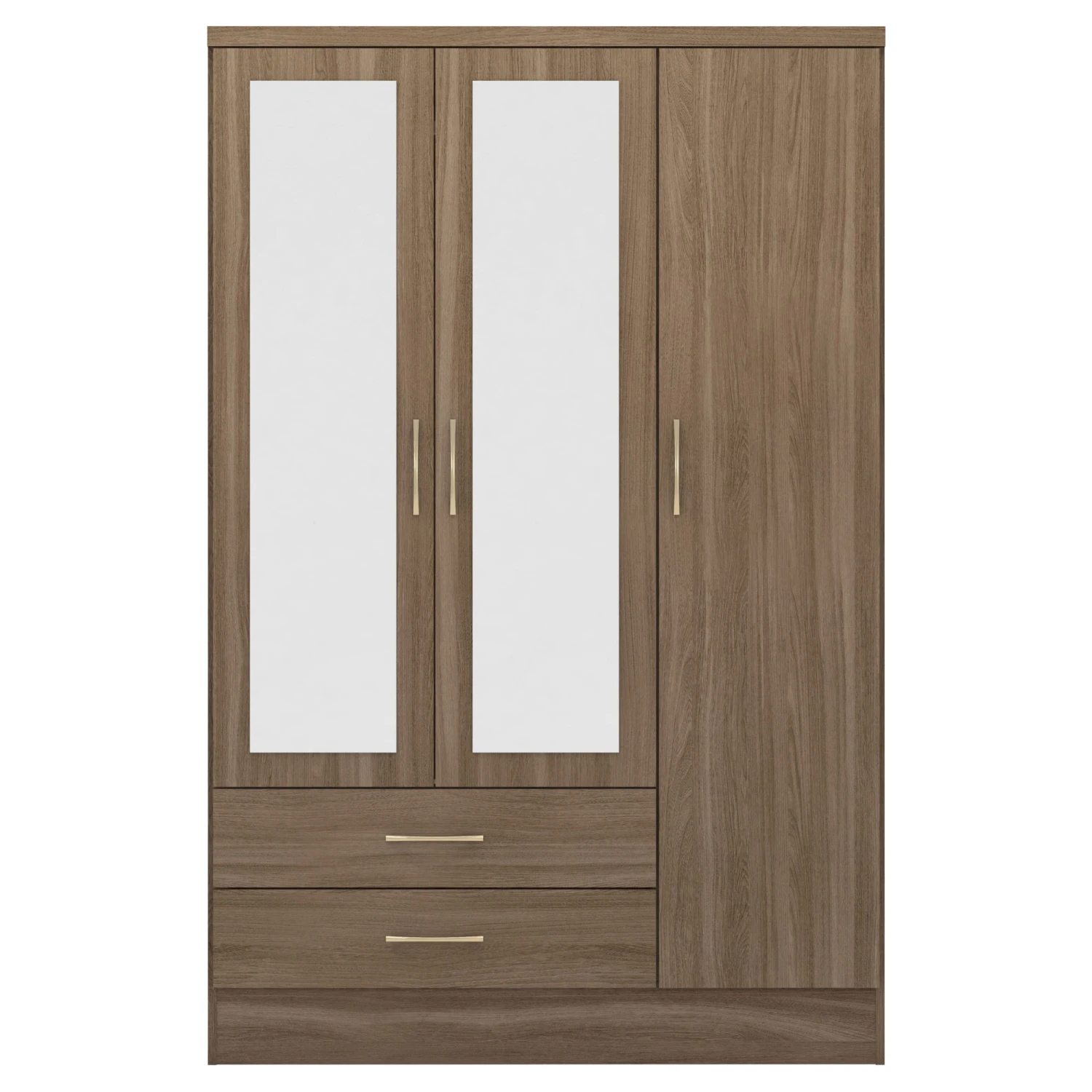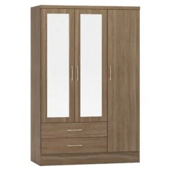 Upgrade your bedroom furniture with additional storage space when you introduce this Nevada Rustic Oak 3 Door 2 Drawer Mirrored Wardrobe. Coming in a rustic oak finish, it’s easily complimentary to existing household decor styles, making it a versatile product for you to switch to a bigger wardrobe space. With 3 doors and 2 drawers of storage, you can fold and neatly tuck away your clothing garments to de-clutter your room. The cupboard space has internal hanging rails, and you can place shoes on the bottom for better organisation. Complete with mirror panelling, it’s a super stylish wardrobe that allows you to check out your outfit before heading out.