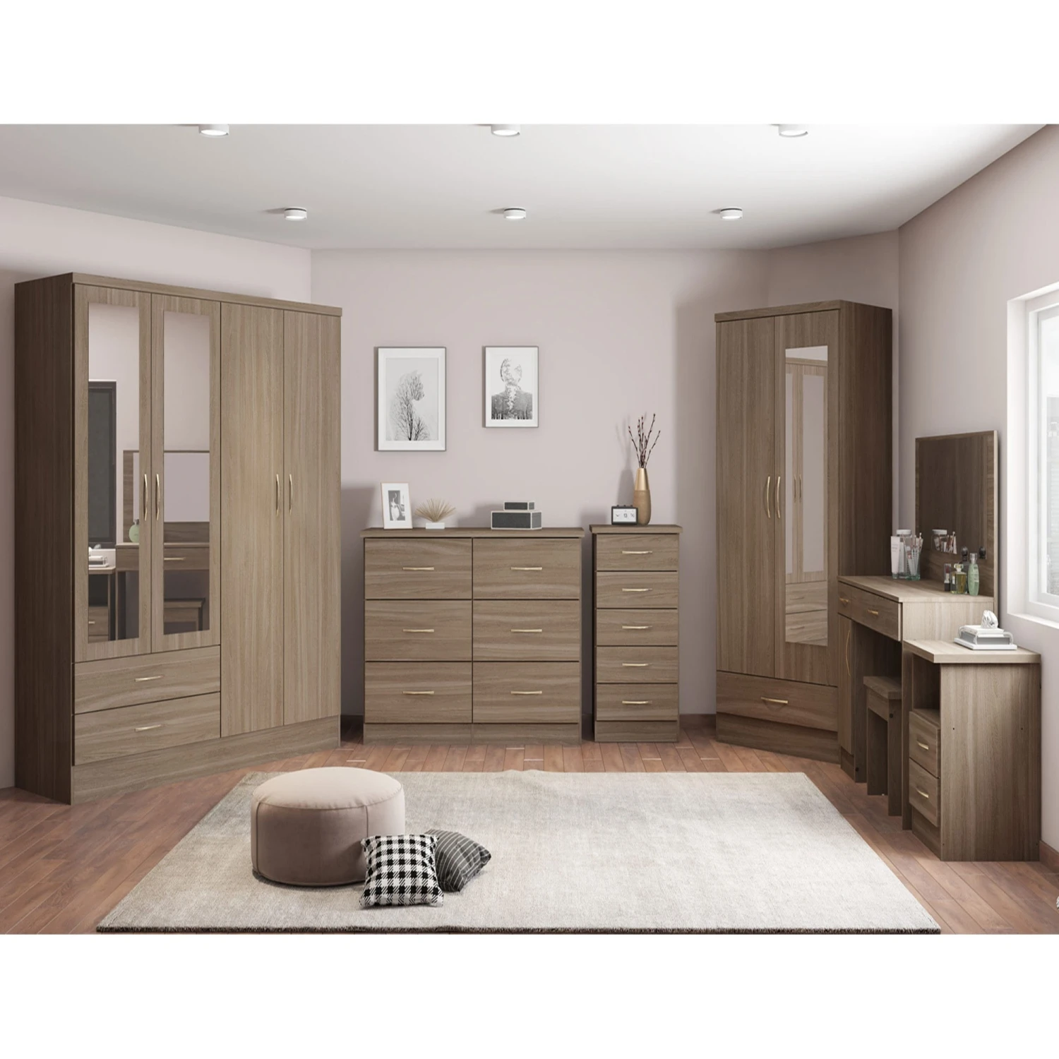 Giving you vast amounts of storage space, this Nevada Rustic Oak Mirrored 2 Door 1 Drawer Wardrobe provides an internal hanging rail for clothing inside its 2 door design as well as a drawer for foldable items such as trousers and t-shirts. Complete with long metal handles, this contemporary styled wardrobe has a mirrored door panel for help when getting ready for the day. Stylish and practical, it will be a welcome addition for all your items and comes in a rustic oak finish that is easily blendable to any modern decor style.