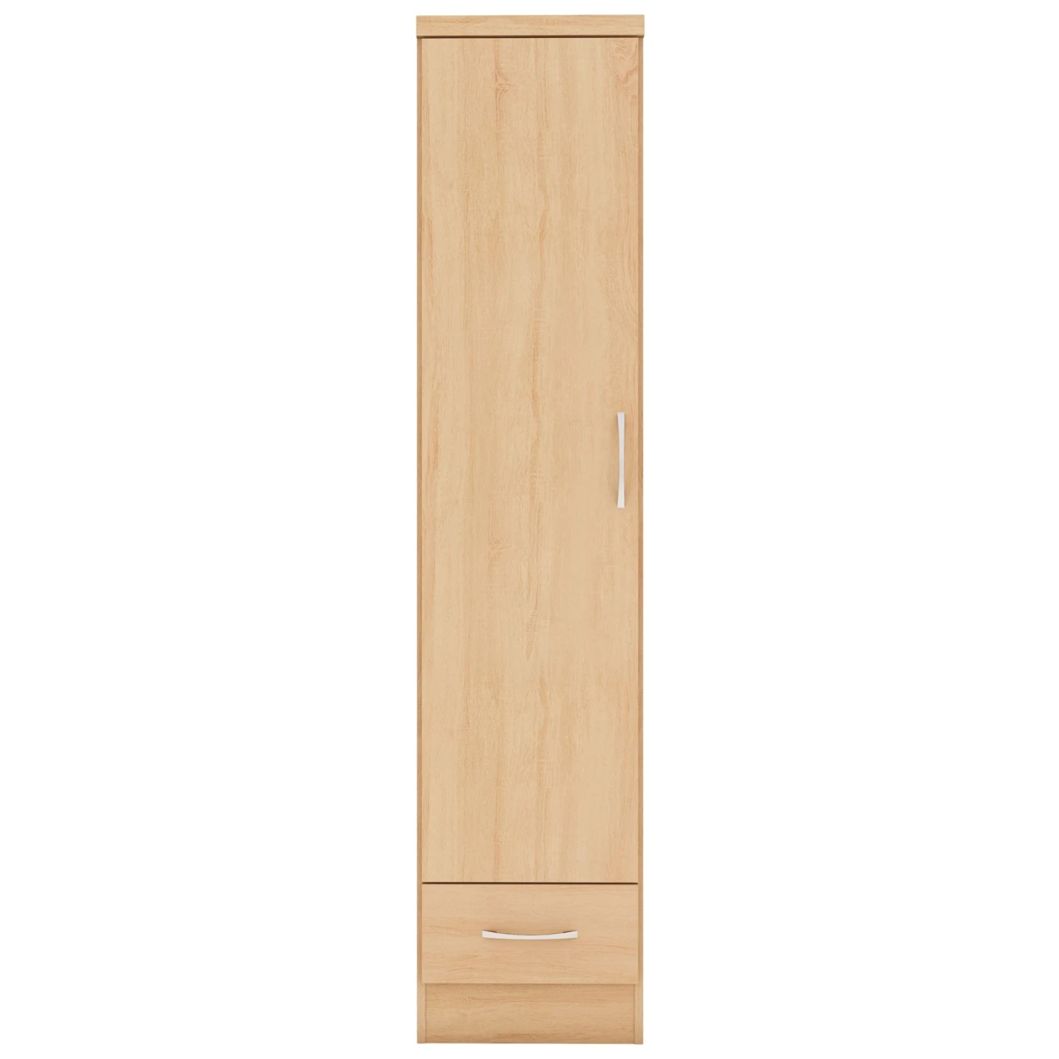 Fond of having family or friends stay over in the spare room, but no space for storage? Check out this Nevada Sonoma Oak Effect 1 Door 1 Drawer Wardrobe, the perfect size for storing clothing and items for short stays. With a 1 door design, it has an internal hanging rail and shelf with a drawer below for all their essentials. Designed to be compact, it’s great for rooms with limited space and offers enough storage in a variety of ways. Manufactured from durable materials, it has a Sonoma oak effect finish, making it blend to most modern interiors for placement in any home.
