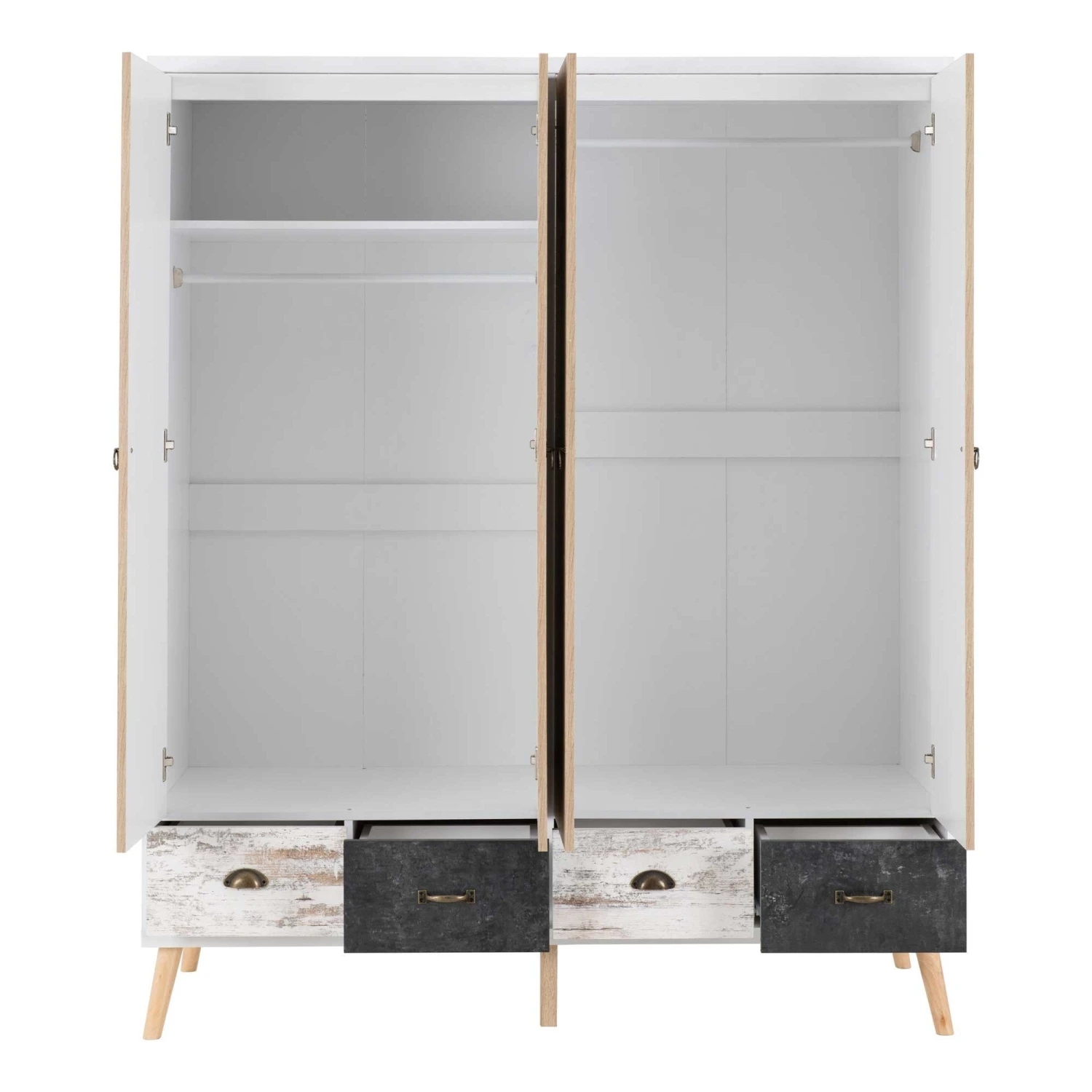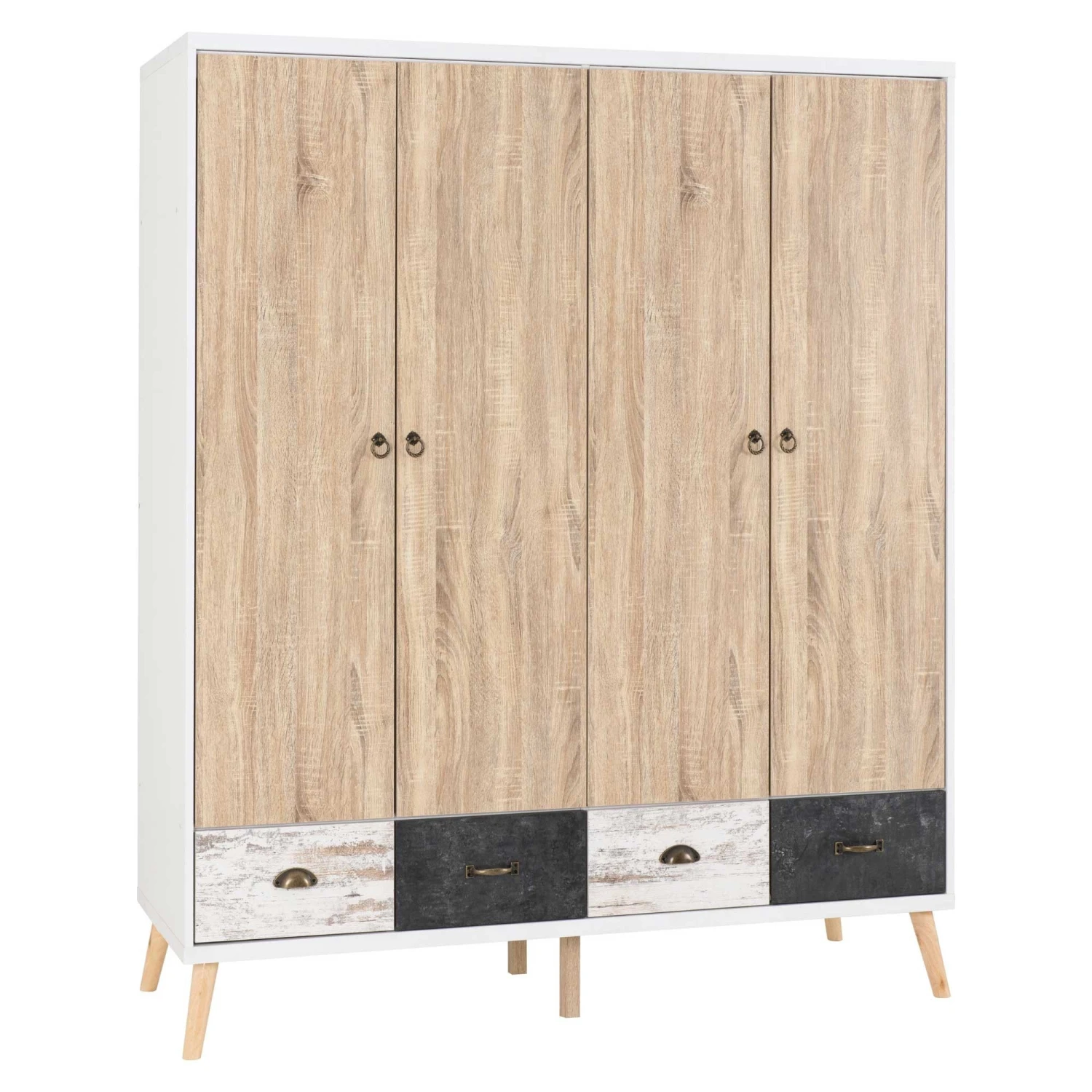Complete the Nordic look in your bedroom with this Nordic 4 Door 4 Drawer Wardrobe. Finished in White with a distressed effect and pine feet, this wardrobe offers plenty of storage with it’s 4 doors and 4 drawers! Ideal for large families or just a person who needs a large wardrobe to house all their clothes!