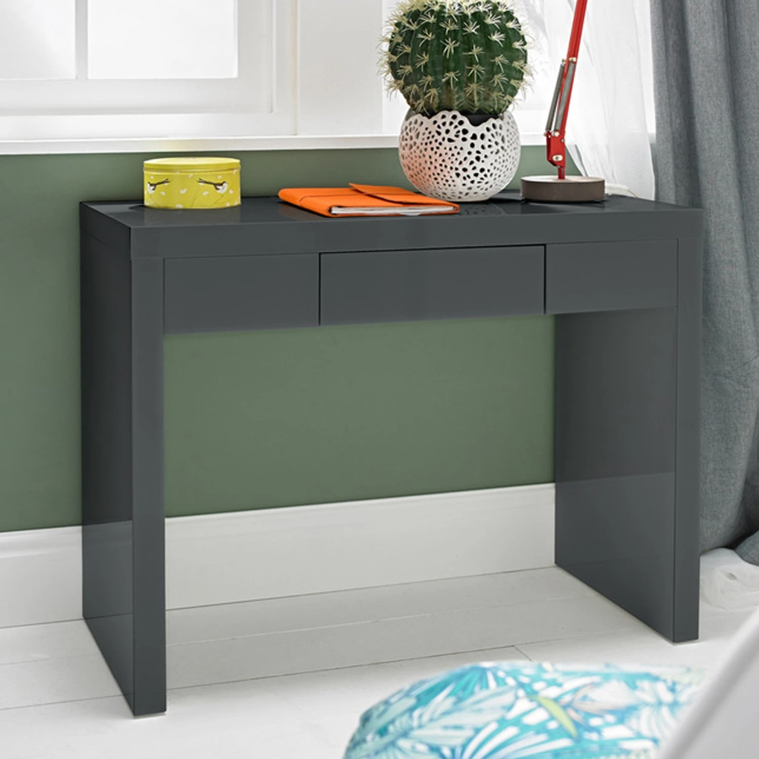 Introducing a piece in from the newest and most stunning Puro charcoal collection, the Puro Dressing table in a beautiful charcoal finish. This wonderful dressing table is practical, looks great in any room and compliments a wide range of interiors. It is coming with a shiny and silky finished design, perfect for any modern home and would look perfect amongst other furniture from the Puro charcoal collection.