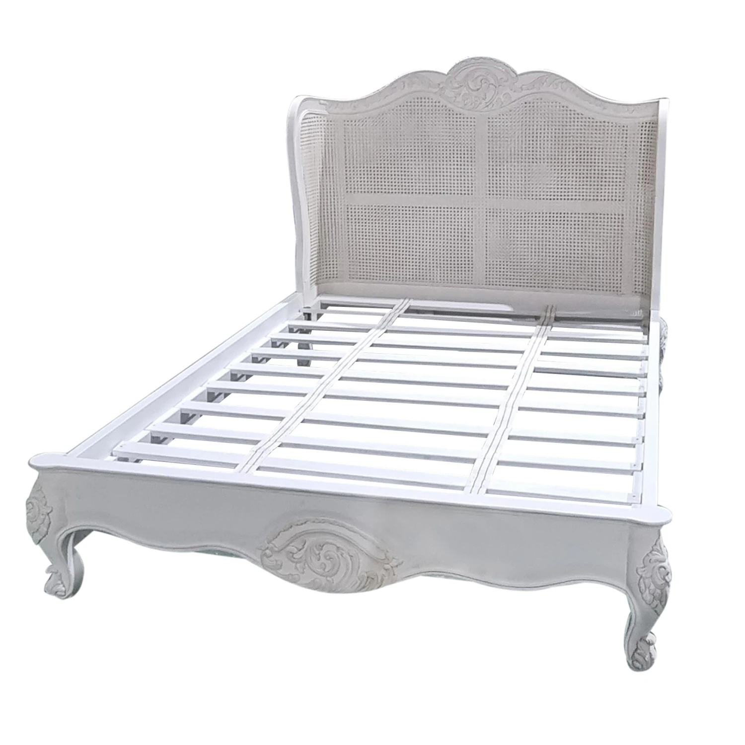 This stunning designed Rattan White Bed features a rattan designed headboard trimmed with a decorative design. There are decorative features to the legs and base of the bed and the whole frame is finished with a white colour to brighten up your bedroom.Â