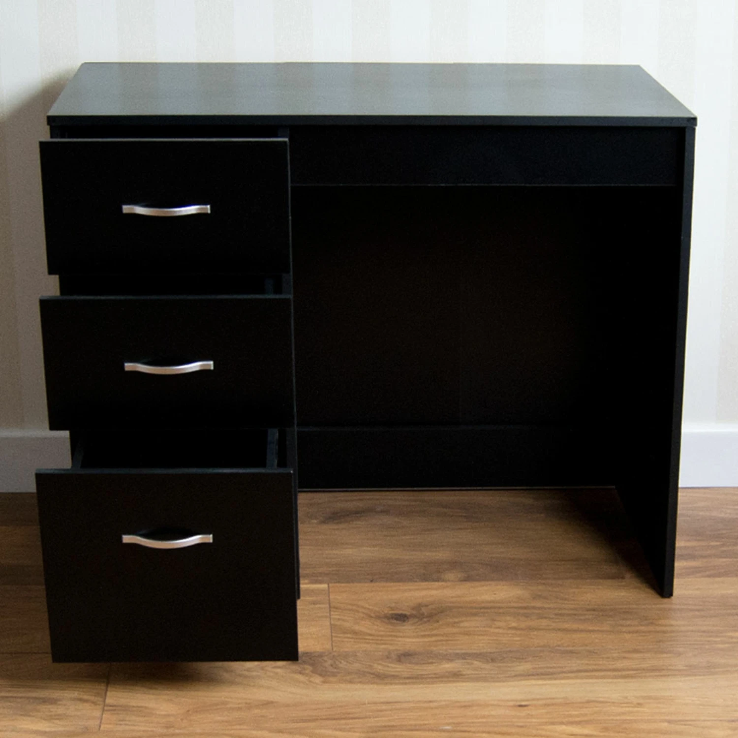 With its black finish, which enables it to be a great part of any contemporary bedroom area, the 3 drawers serve as a way of keeping the surrounding area whilst the rest of the dressing table offers you practical design that can be utilised every day. Whether you’re matching it with other black furniture or not, you will not come to regret adding this stunning piece to the interior space.
