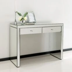 A brand new addition to our range of Venetian mirrored furniture, comes this the delightful Romano crystal mirrored dressing table. Inspired by the Italian Venetian period, the versatile design of this mirrored dressing table and the Romano crystal mirrored range will sit comfortably in a modern or traditional setting making this mirrored furniture collection a welcome addition to any home.