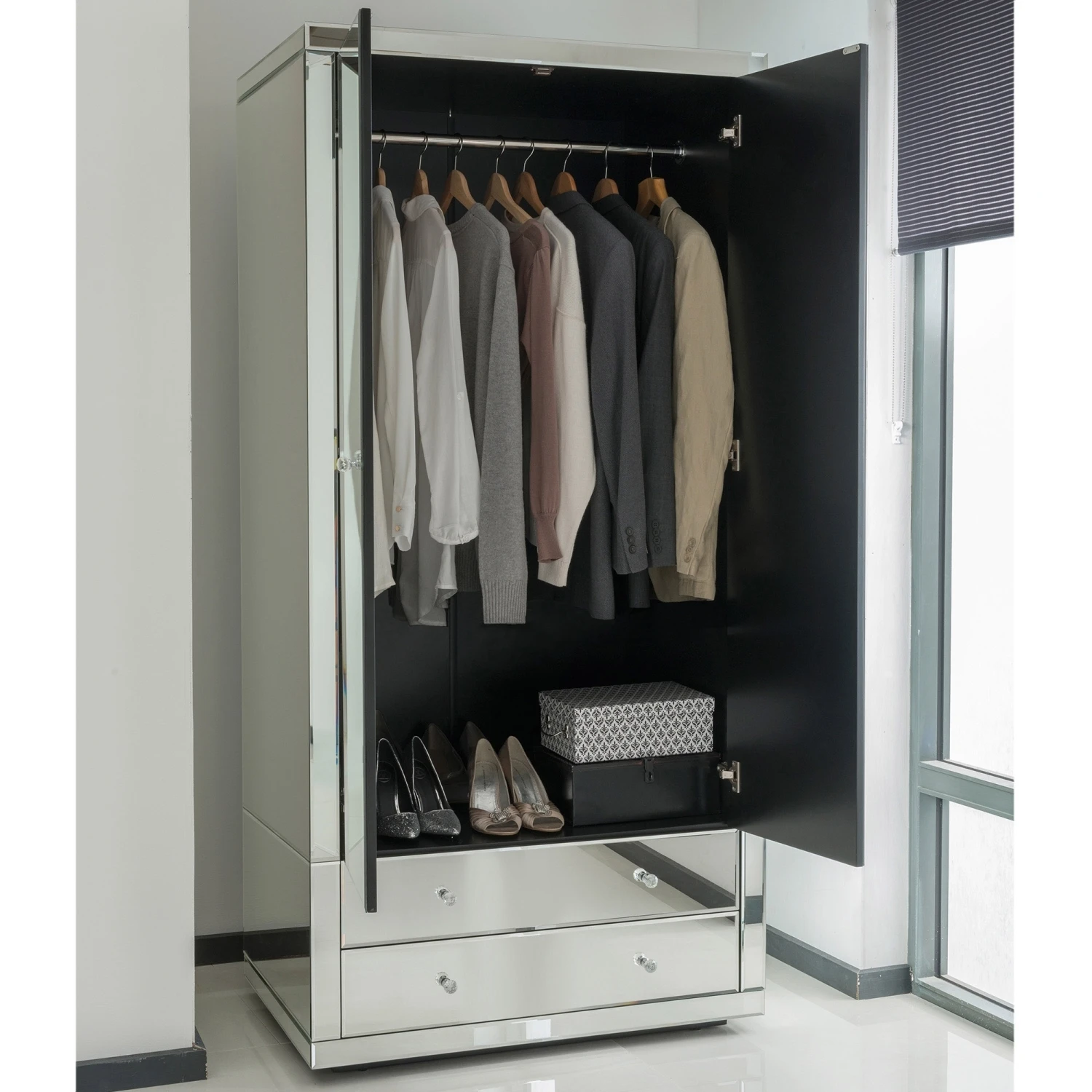 Please note – The back of the wardrobe is not mirrored.Â