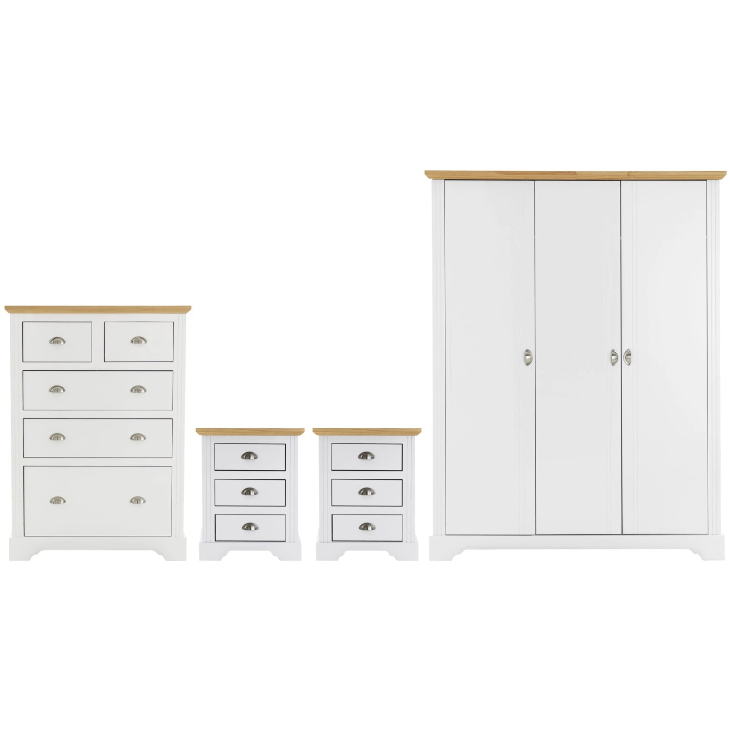 The Toledo 3 Door Wardrobe Bedroom Set is sure to spruce up the bedroom with a linear way of decorating it, having everything matching in a calming white. Includes 2 bedside tables with 3 spacious drawers, a chest and large wardrobe.