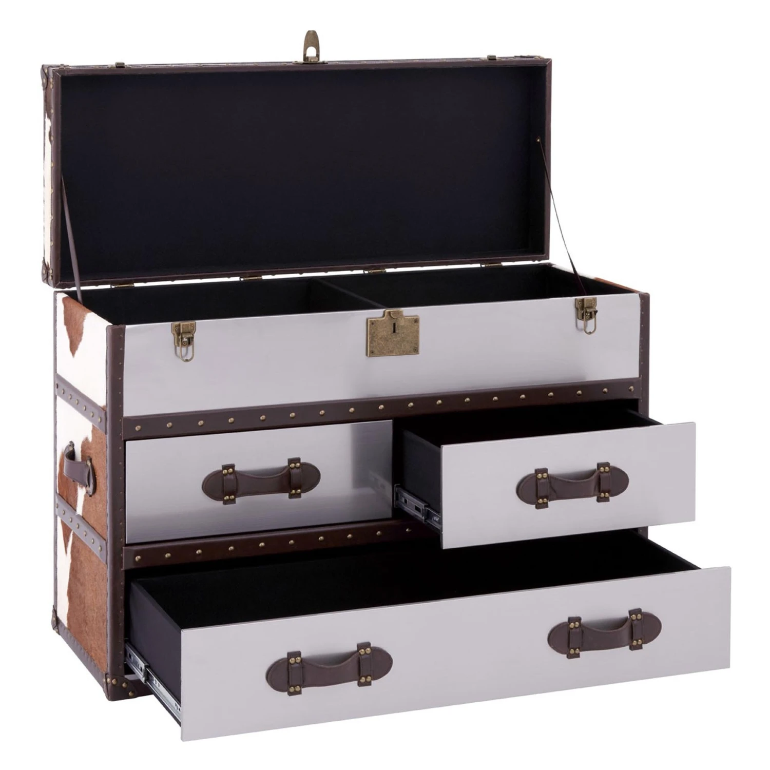 Beautifully made, this 3 drawer cabinet will make for a standout piece of furniture within your home. With its unique brown and white cow hide design, featuring metal and steel handles, this gorgeously made cabinet will bring the wow factor straight to your home. Granting you with some generous storage, this 3 drawer cabinet is a must buy for any style of home.