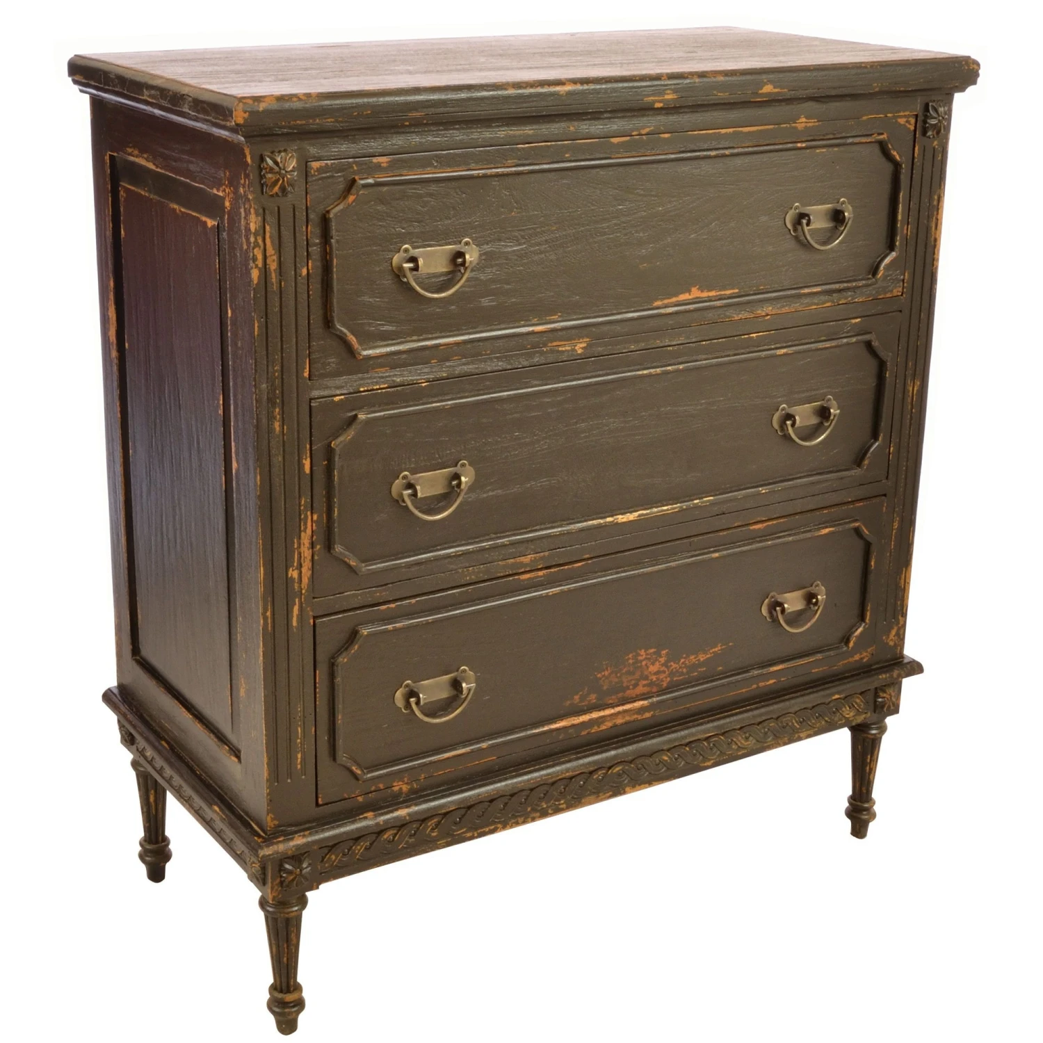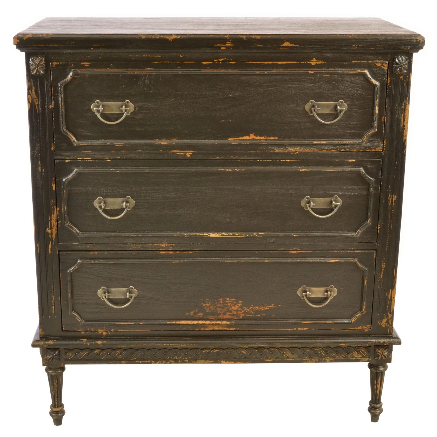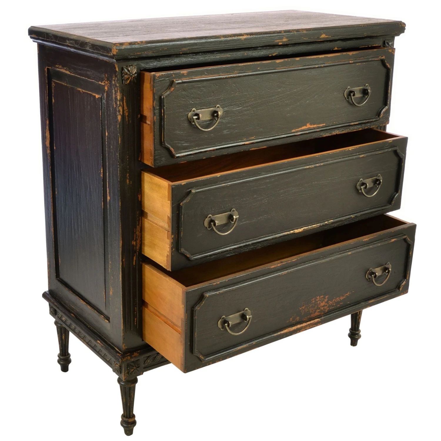 The Vintage Black Mahogany 3 Drawer Chest of Drawers has an undeniable vintage look giving it lots of character. Made from sturdy mahogany wood in a black finish that has been playfully worn away. Complete with three full width spacious drawers this has plenty storage to not only be kept in the bedroom but maybe the office space for filing purposes.