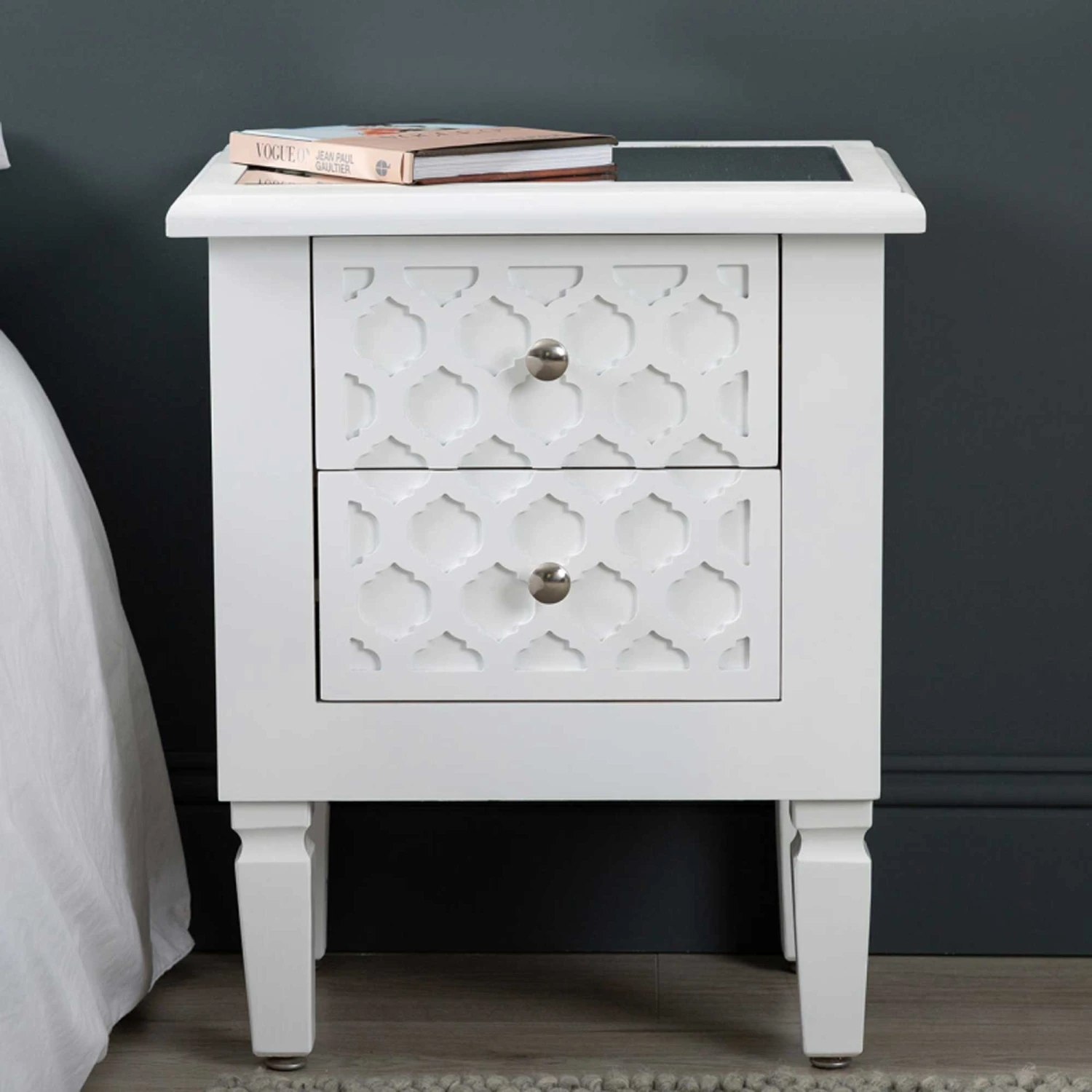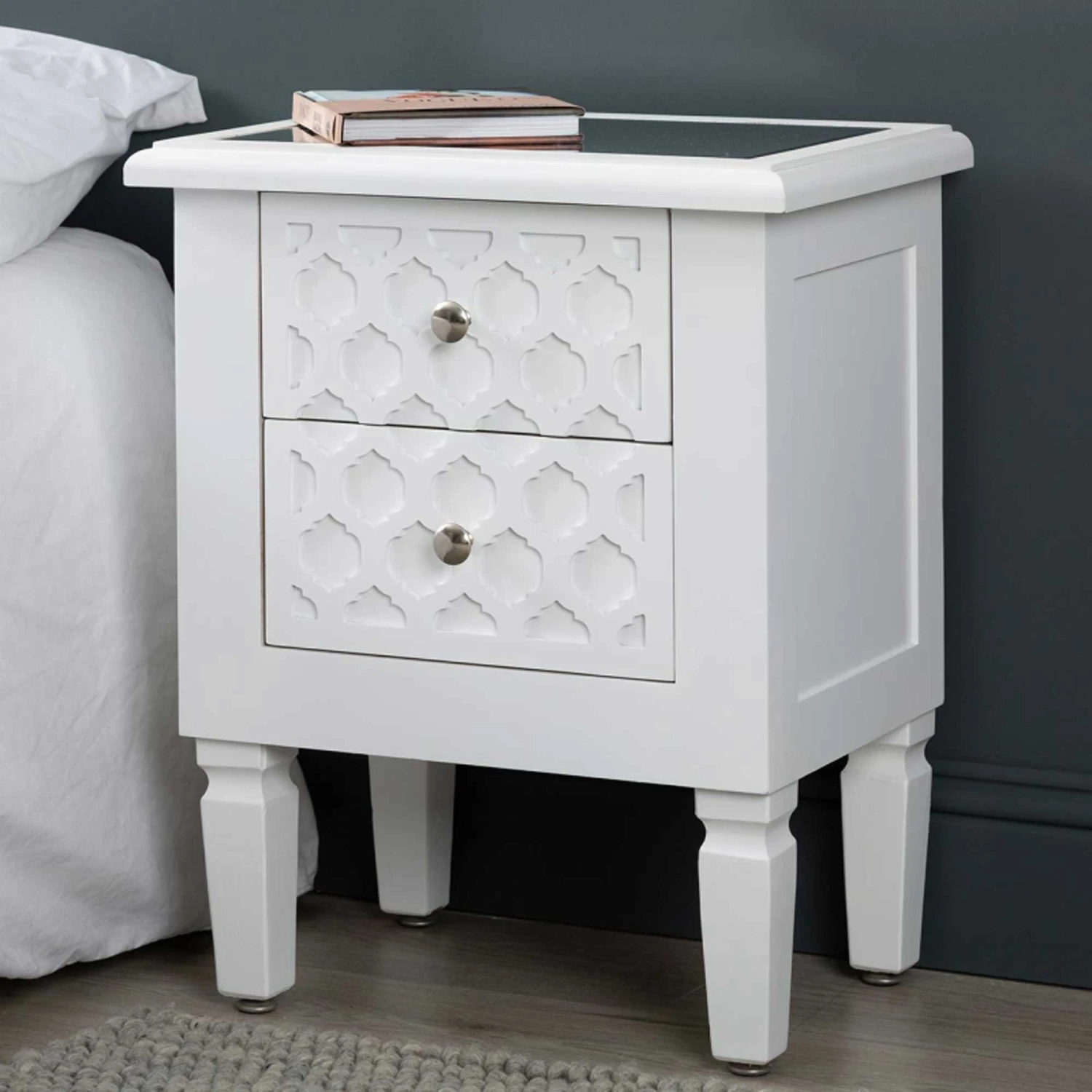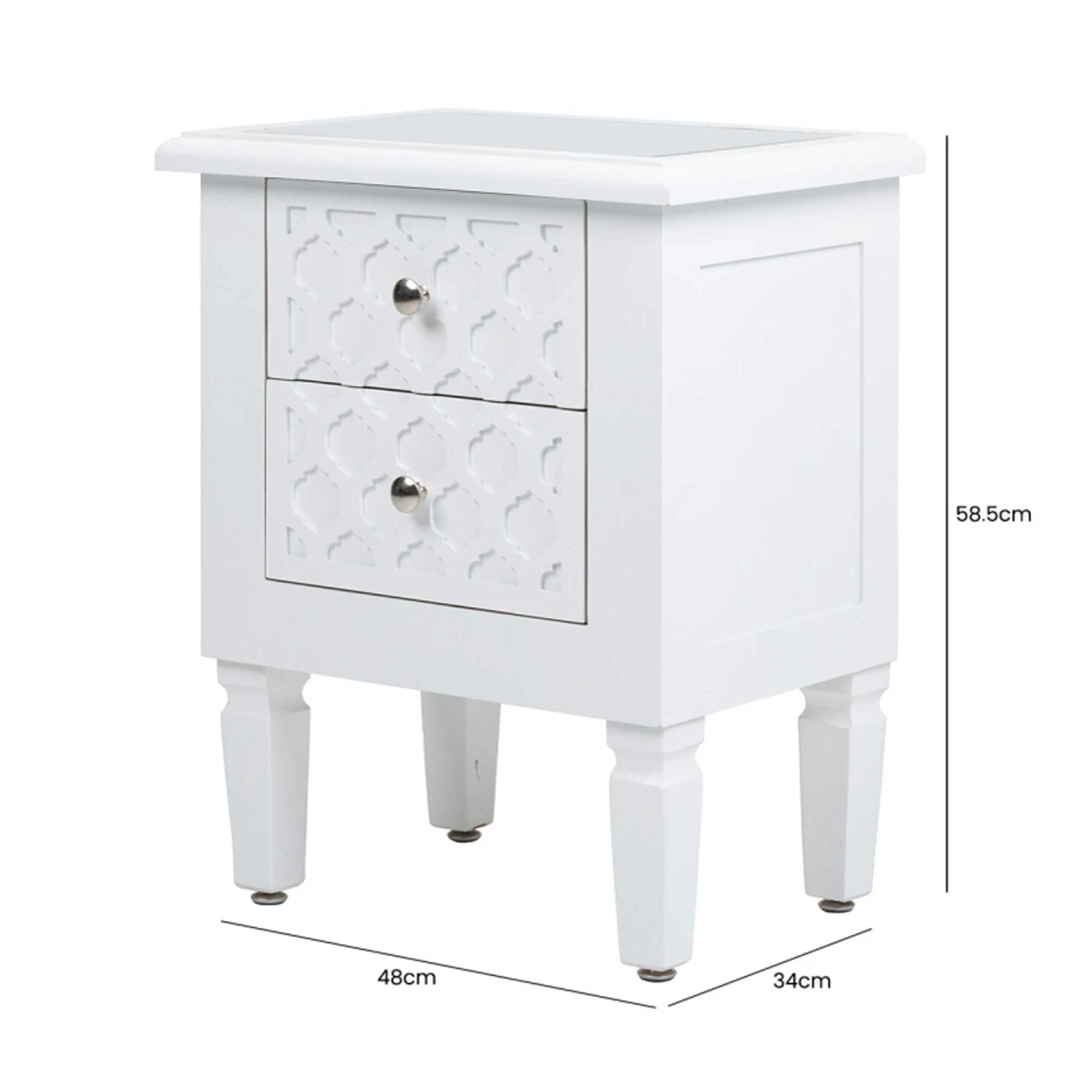Add to your home interior with a simple splash of colour with the newest range to our collection of modern furniture, coming from the Benton Collection this beautiful White Benton Wooden Bedside is made from wood and features a mirrored top. Also having two spacious drawers for all your storage needs this Bedside table is a must have addition to add to your home interior and is ensured to last a lifetime.